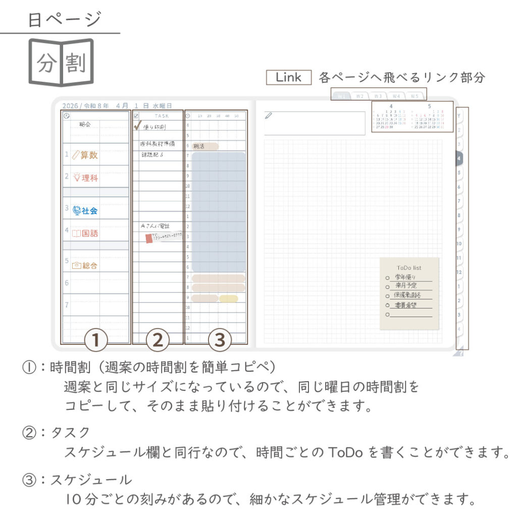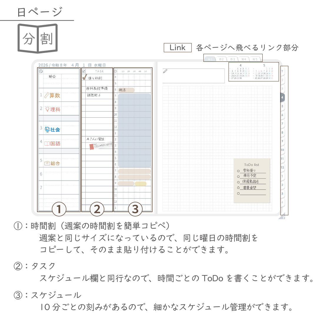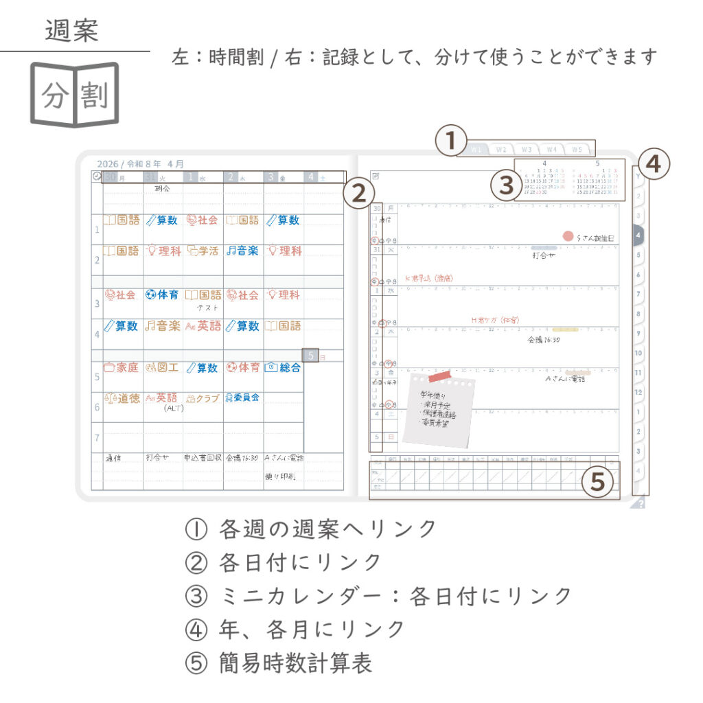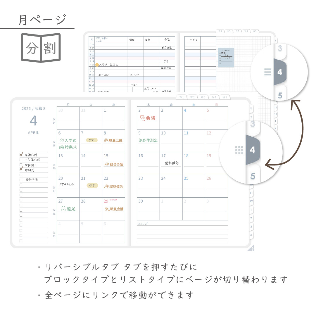 2026年度「先生手帳(小学校版)」【ライト:分割】【色:スノー】