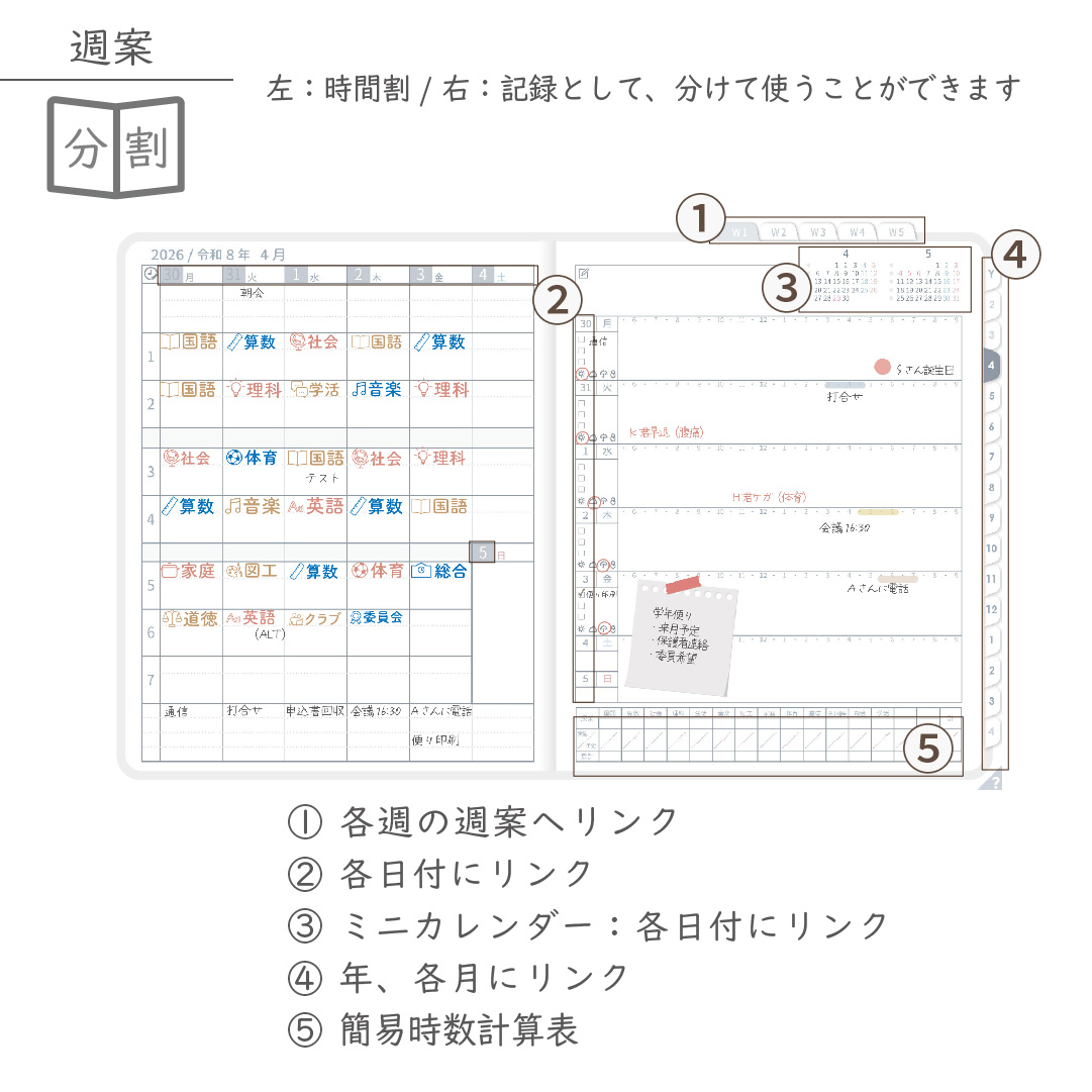 年間・月間・週案・日々の予定をひとつの流れでつなぎ、