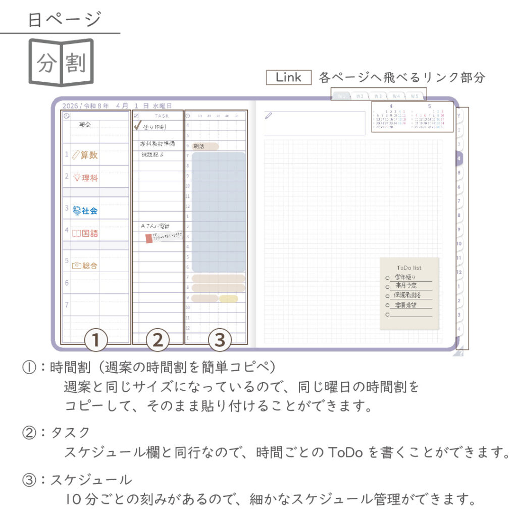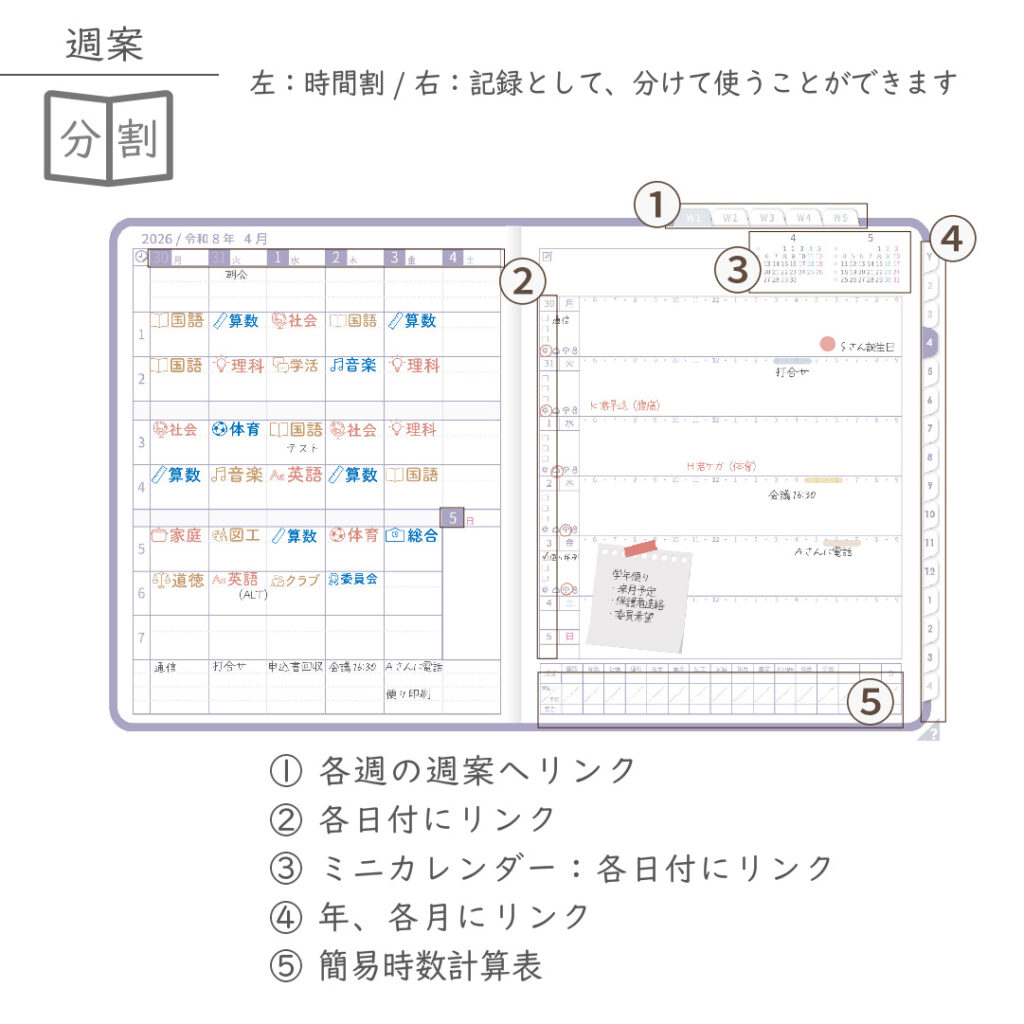 2026年度「先生手帳(小学校版)」【ライト:分割】【色:スミレ】