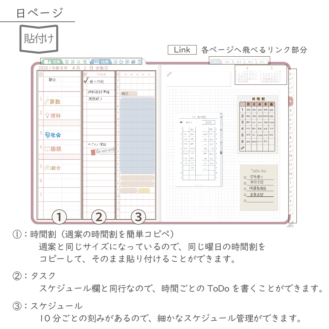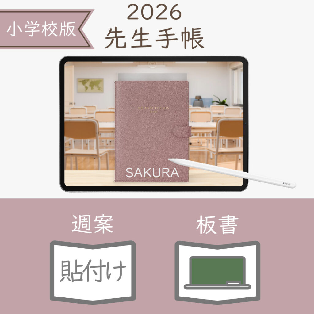 2026年度「先生手帳(小学校版)」【レギュラー:貼付け/黒板】【色:サクラ】
