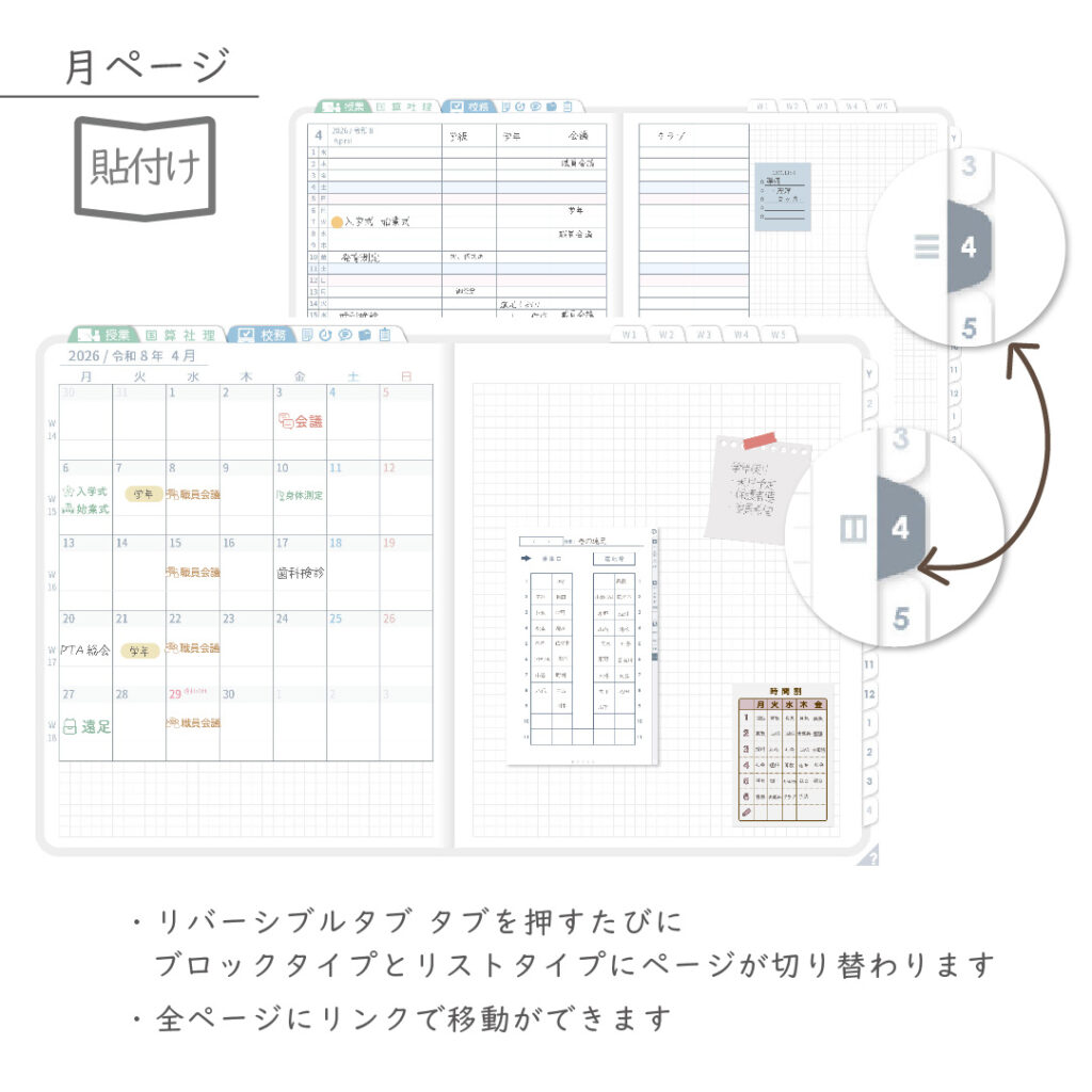 ・年間・月間ページ(※1)はそれぞれリバーシブルで2種類のページを簡単切り替え
