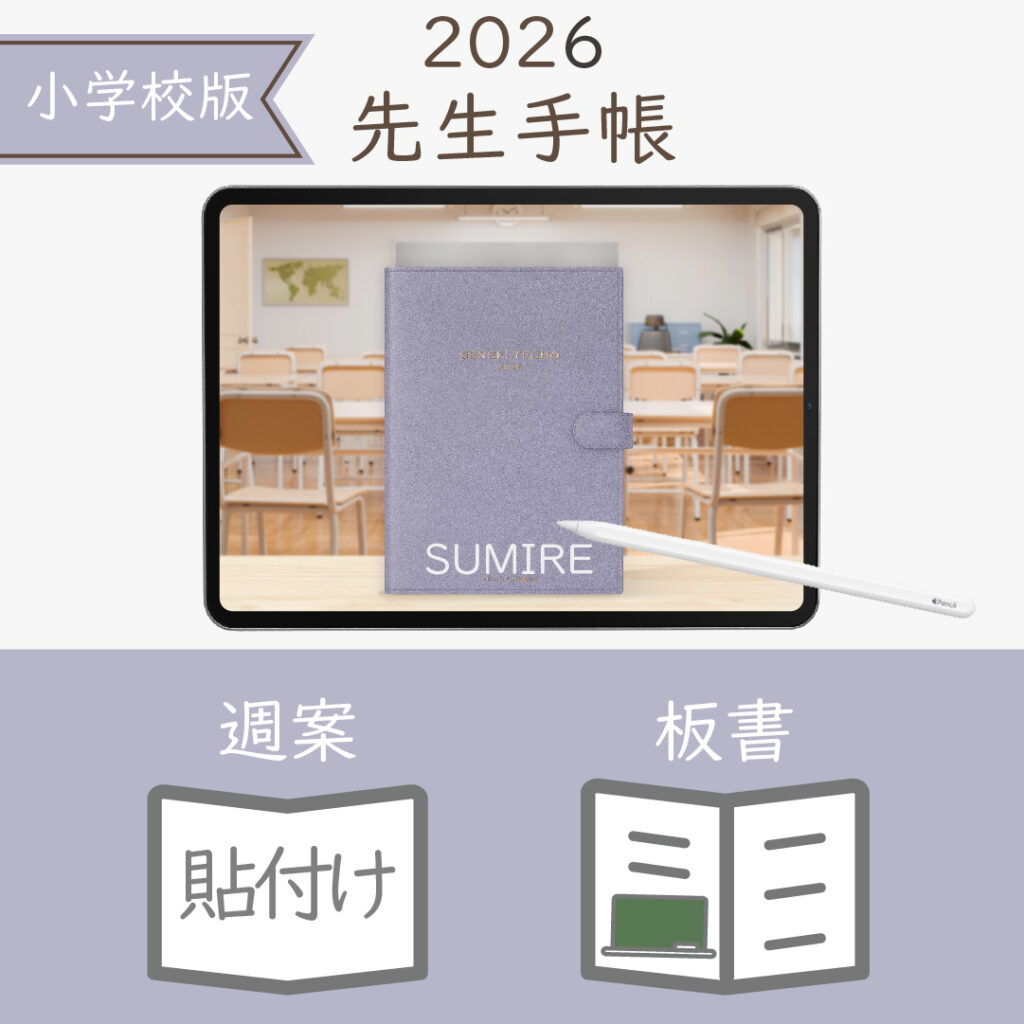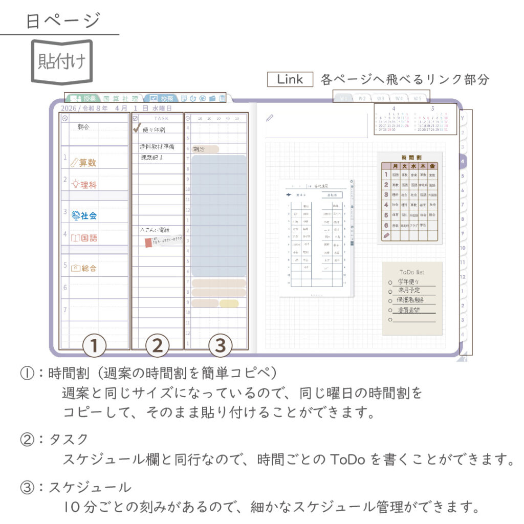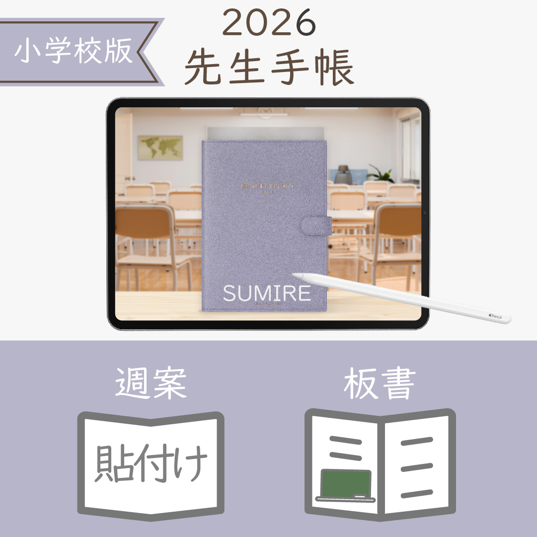 2026年度「先生手帳(小学校版)」【レギュラー:貼付け/ノート】【色:スミレ】