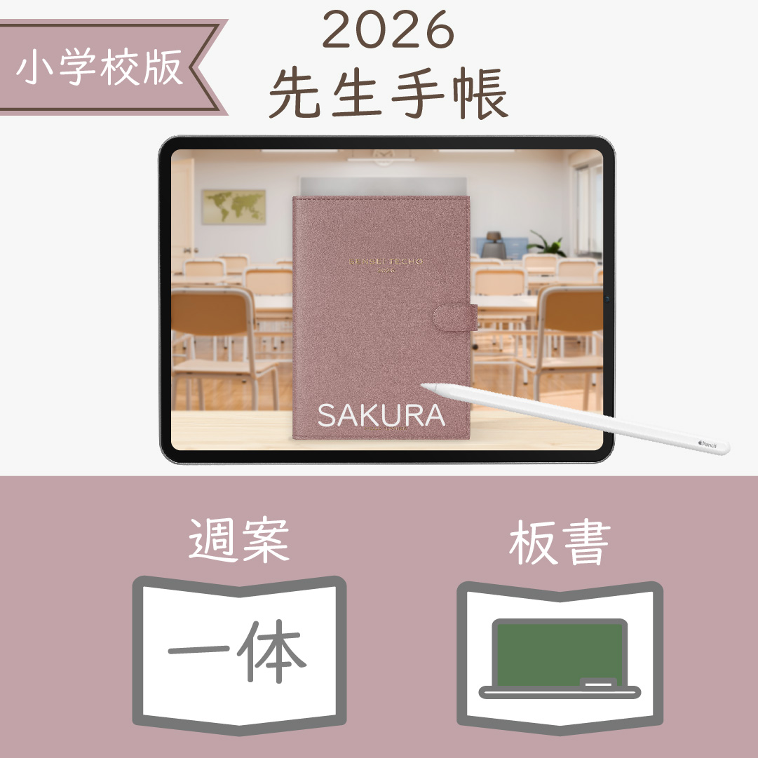 2026年度「先生手帳(小学校版)」【レギュラー:一体/黒板】【色:サクラ】