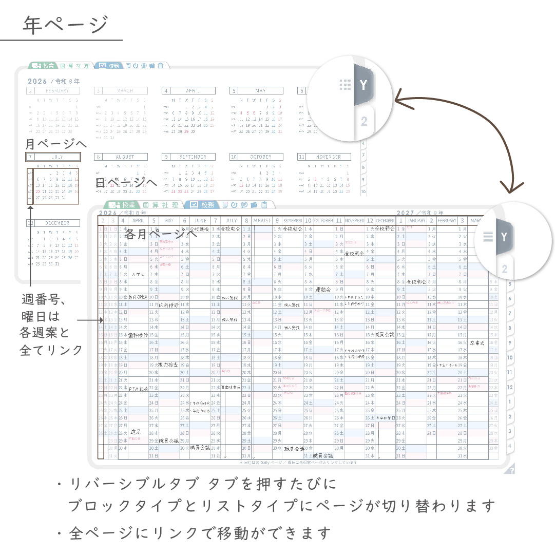 ・年間・月間ページ(※1)はそれぞれリバーシブルで2種類のページを簡単切り替え