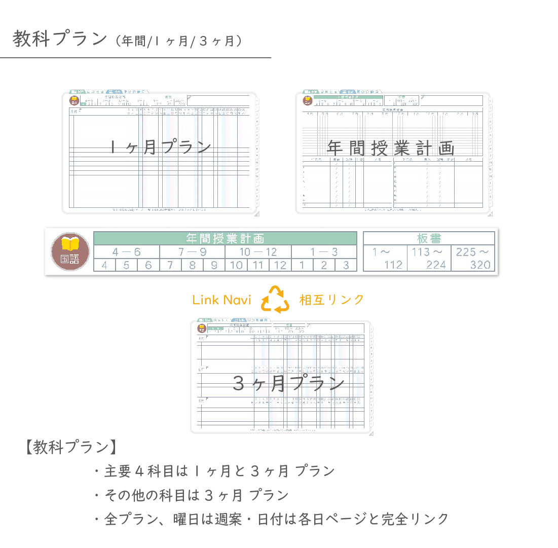 ・13教科+2教科(予備)全てに年間・月間計画と単元シートに加え授業数分の板書(※3)がセット