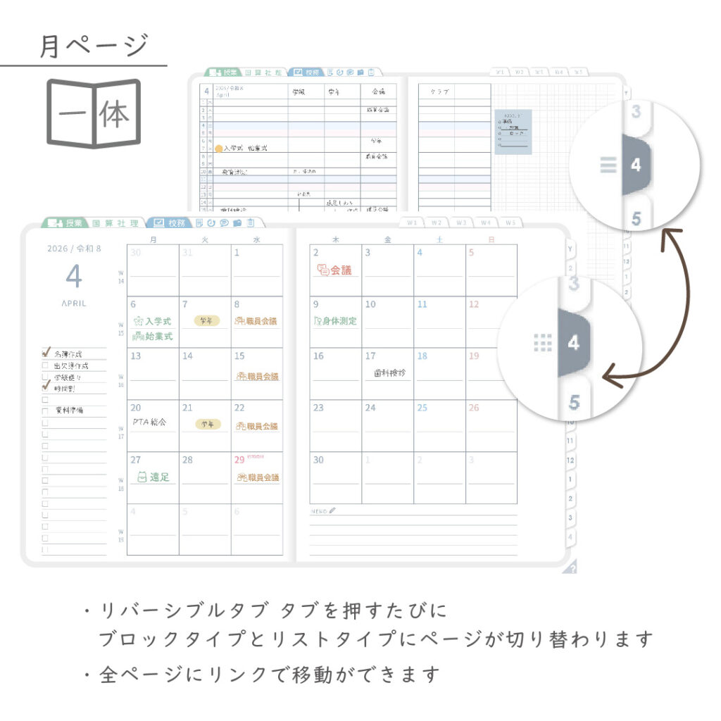 ・年間・月間ページ(※1)はそれぞれリバーシブルで2種類のページを簡単切り替え