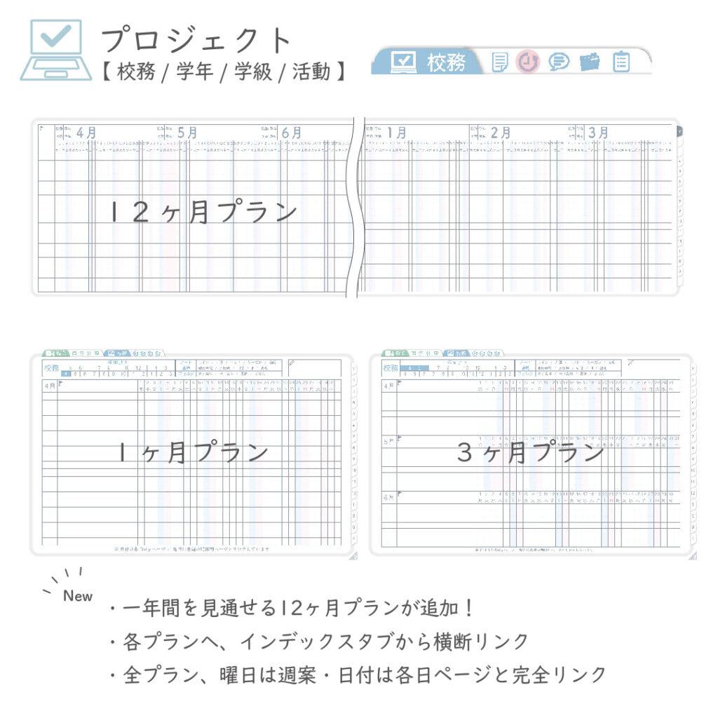 ・校務、学年、学級、活動など内容ごとに3ヶ月+1ヶ月ごとのプロジェクトシート
