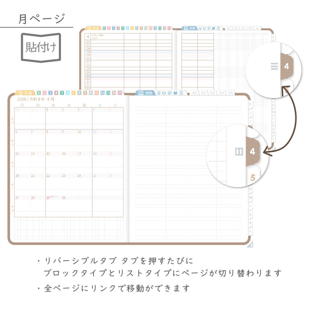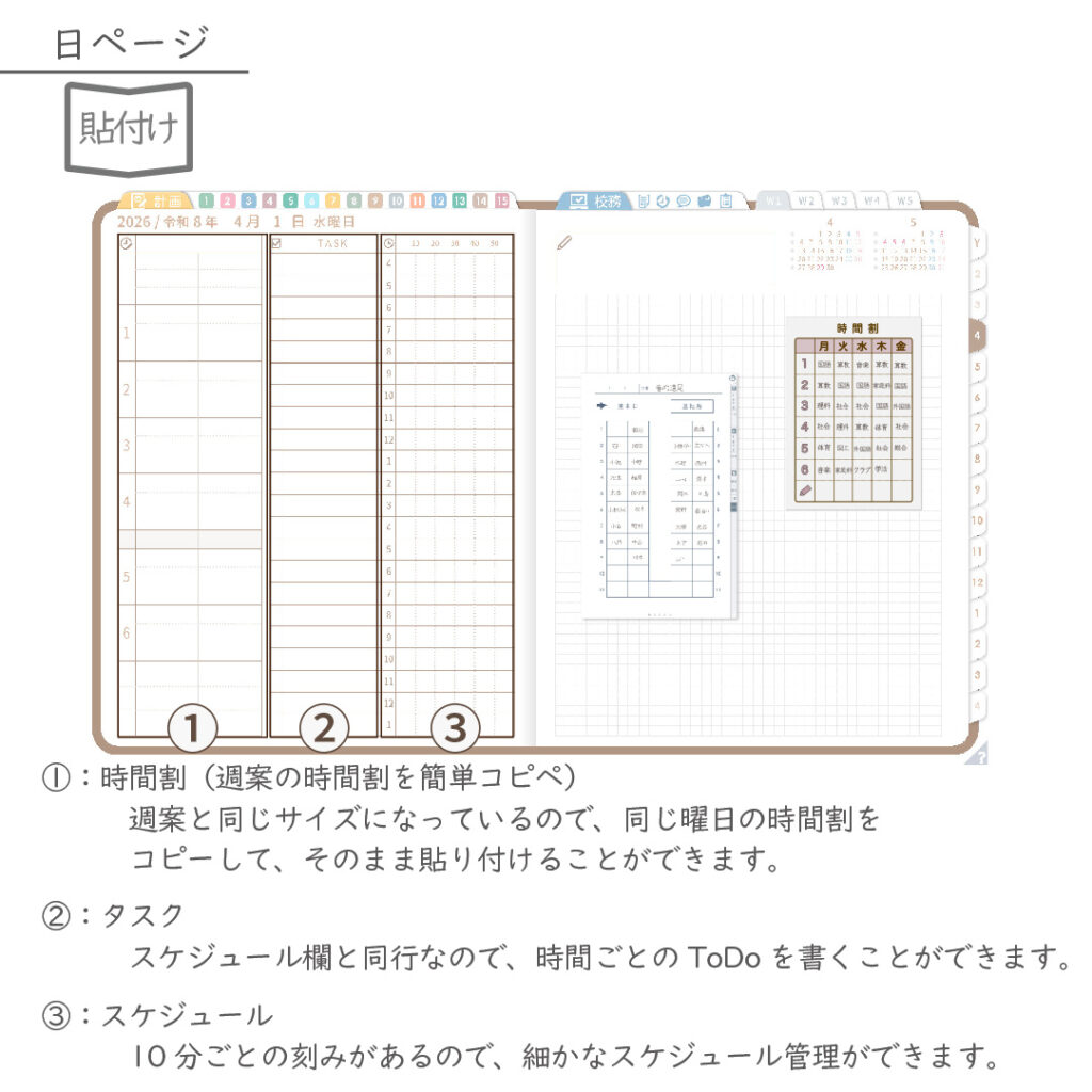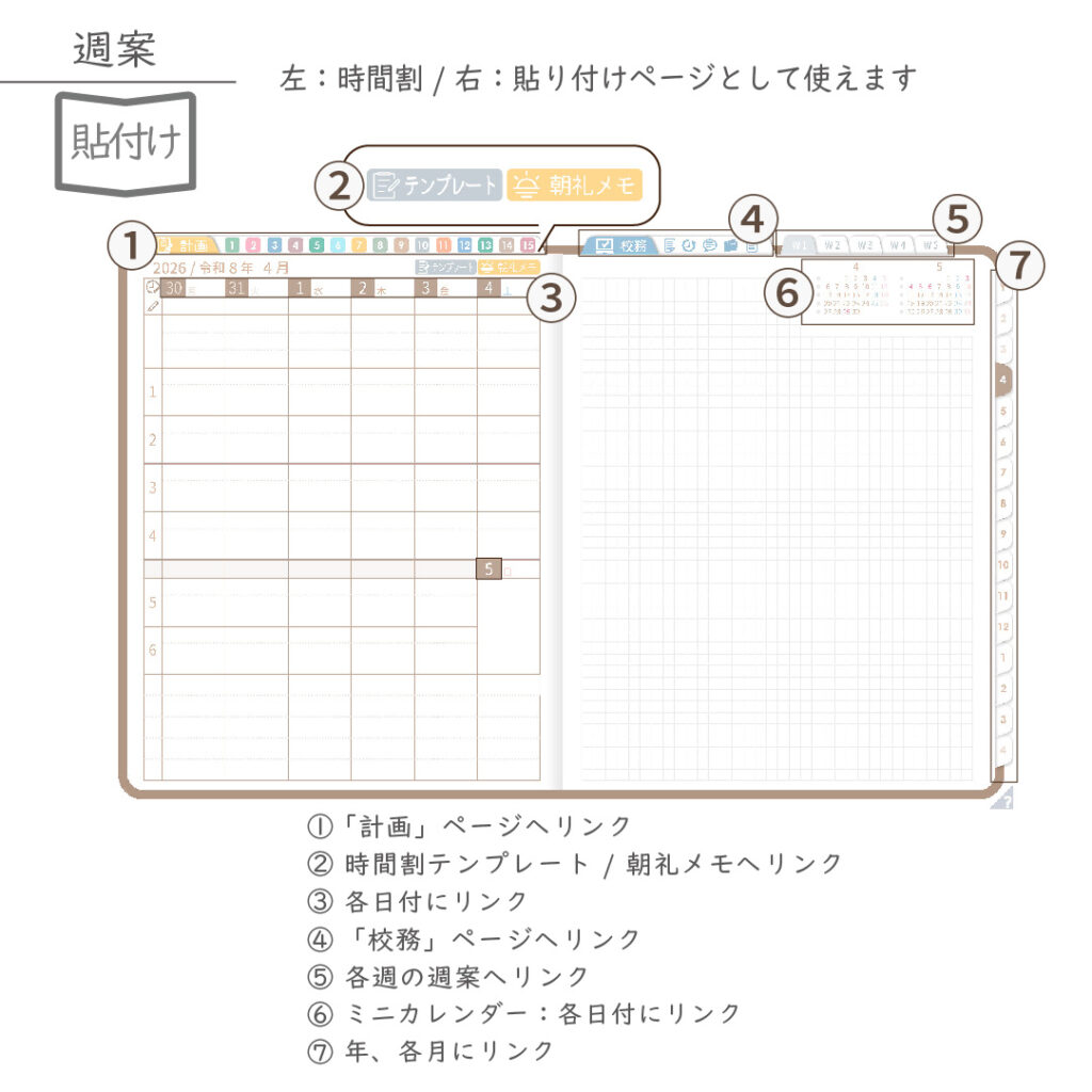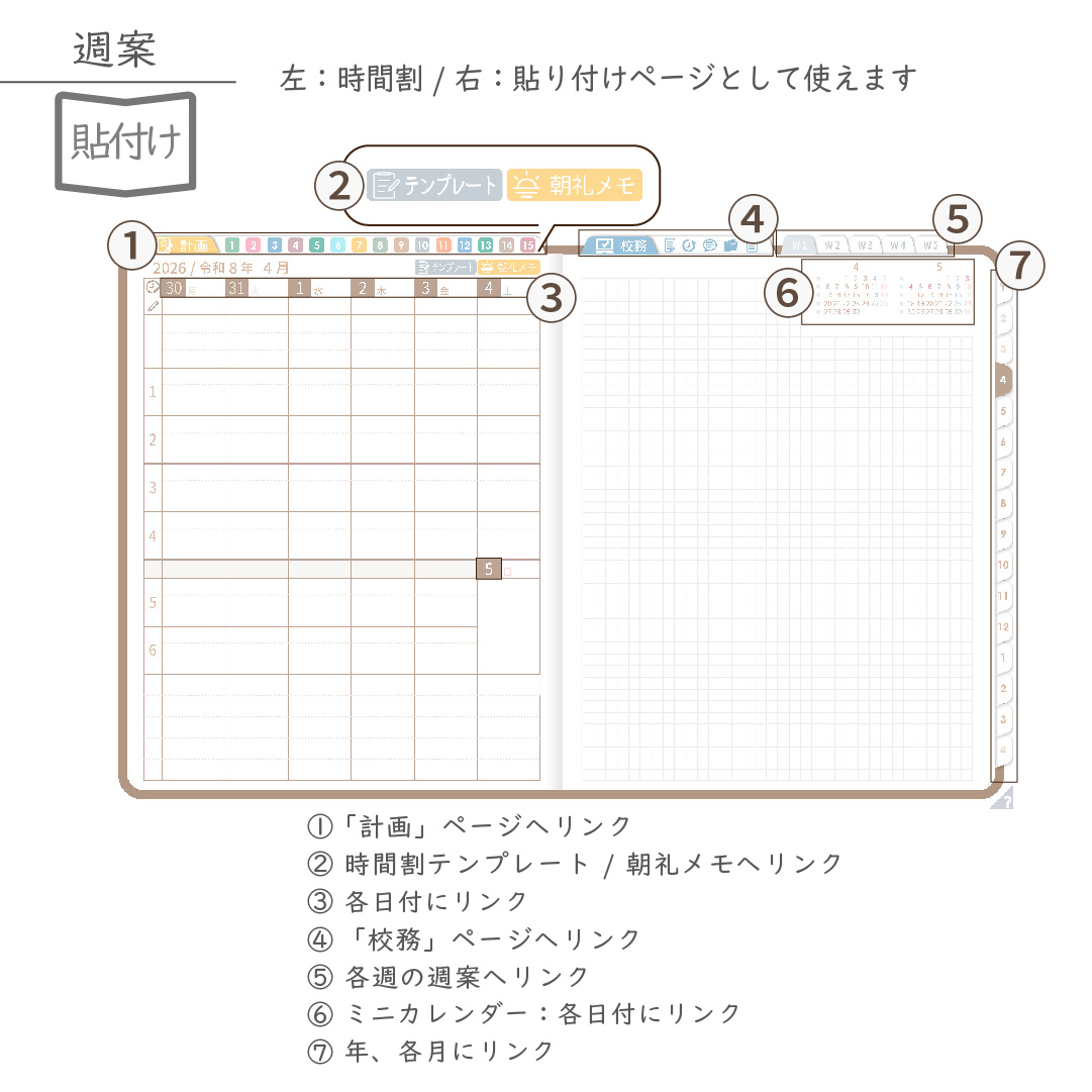 2026年度「先生手帳特別支援学級(中学校版)」【週案:貼付け型】【色:マロン】