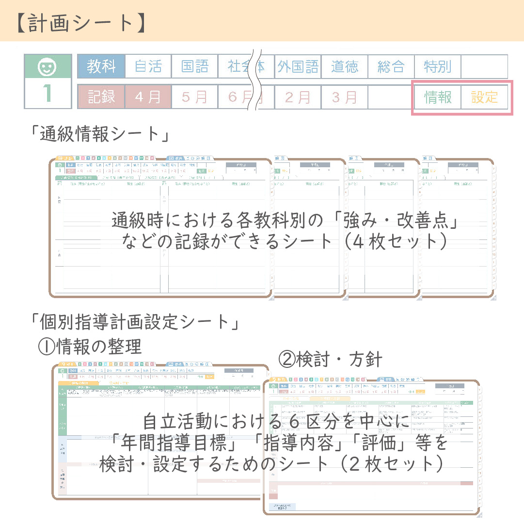 交流学級・通級授業時の様子を、月3枚(2週間ごと)記録可能