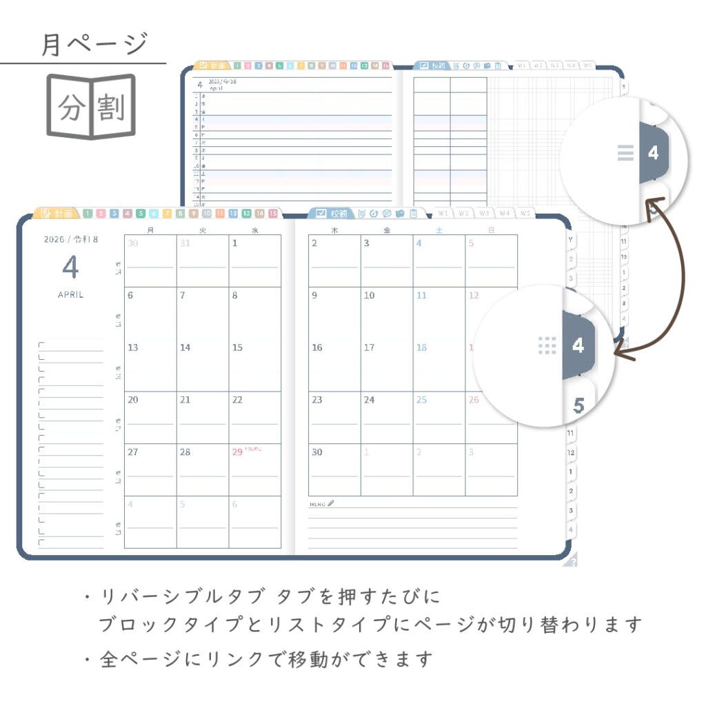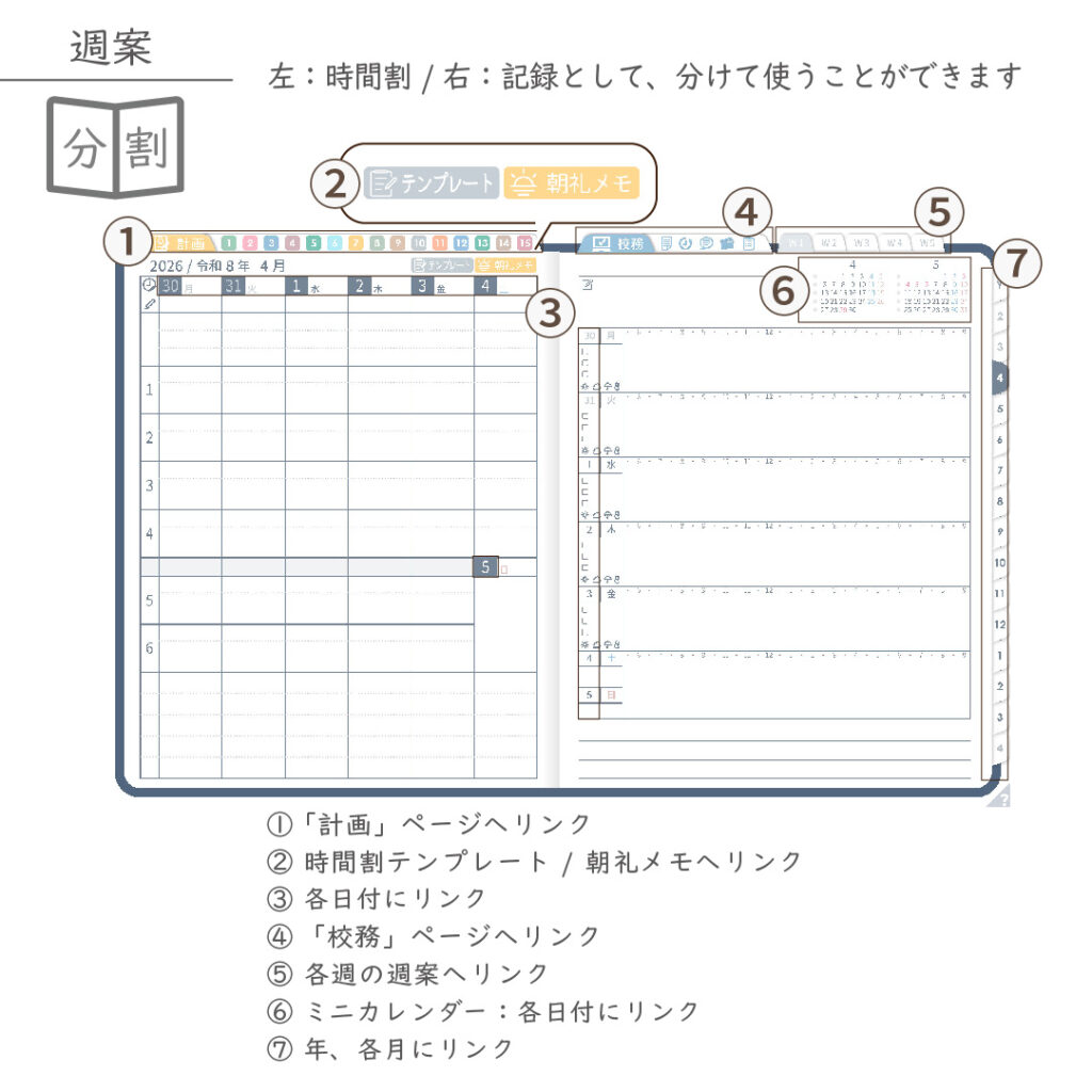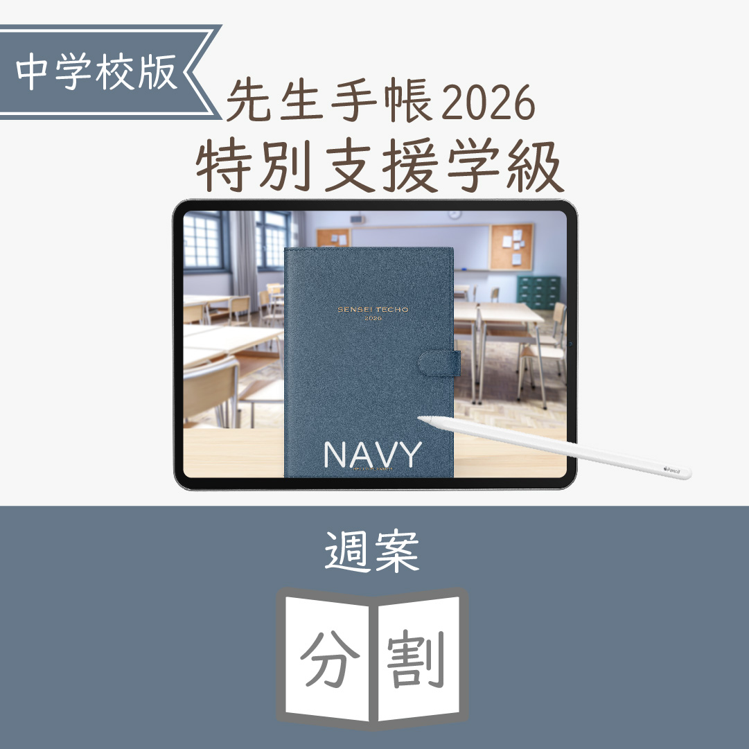 2026年度「先生手帳特別支援学級(中学校版)」【週案:分割型】【色:ネイビー】