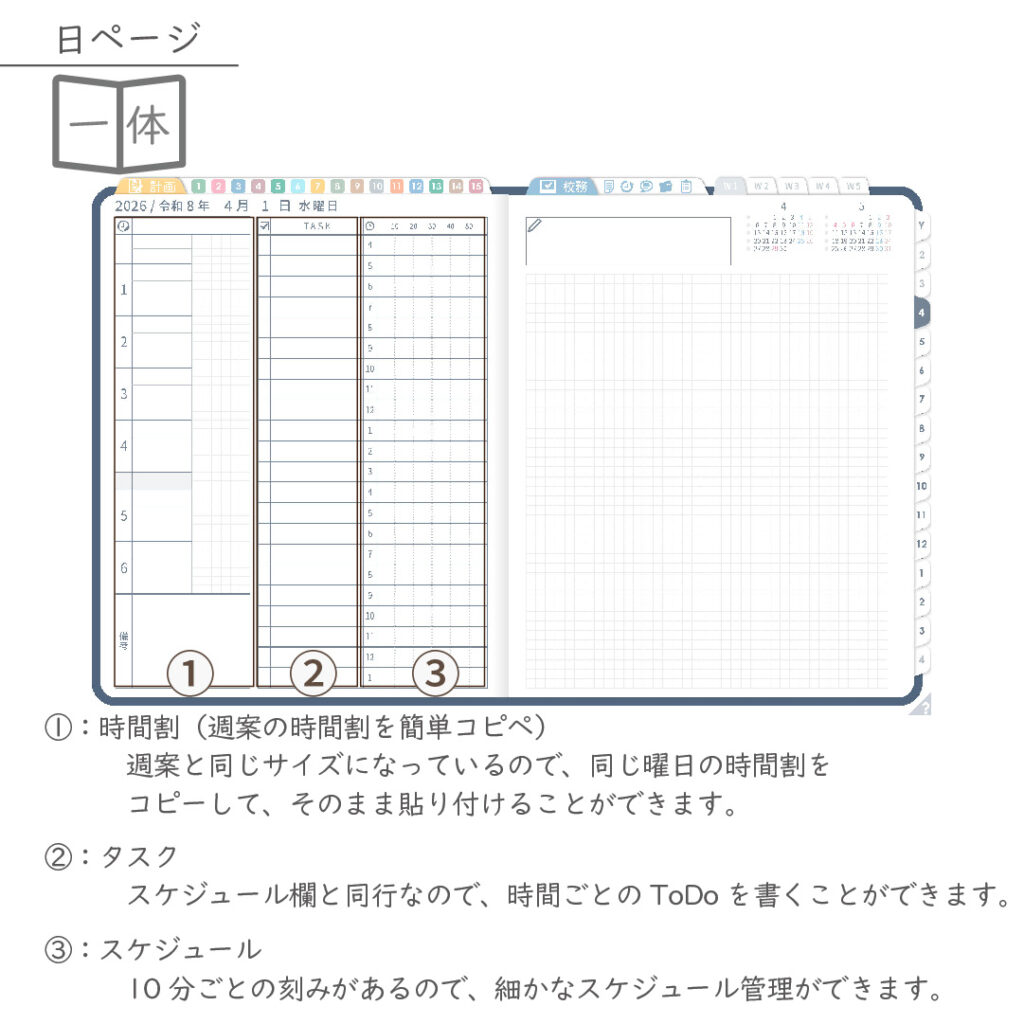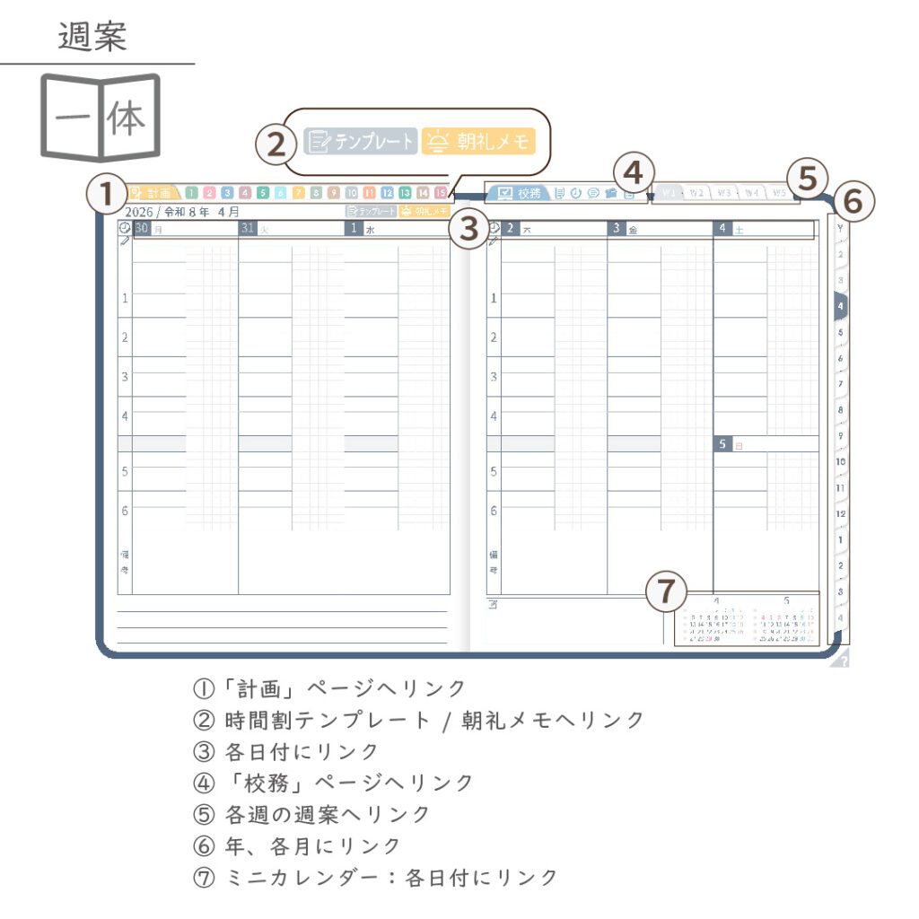 2026年度「先生手帳特別支援学級(中学校版)」【週案:一体型】【色:ネイビー】