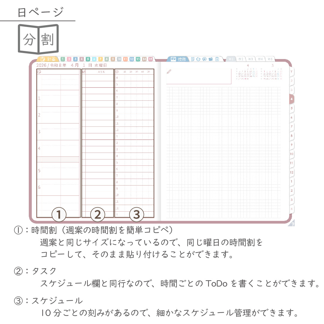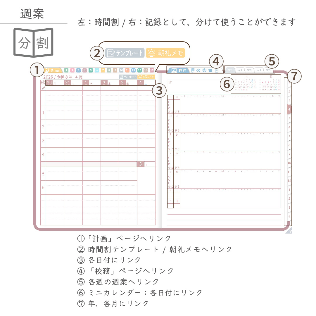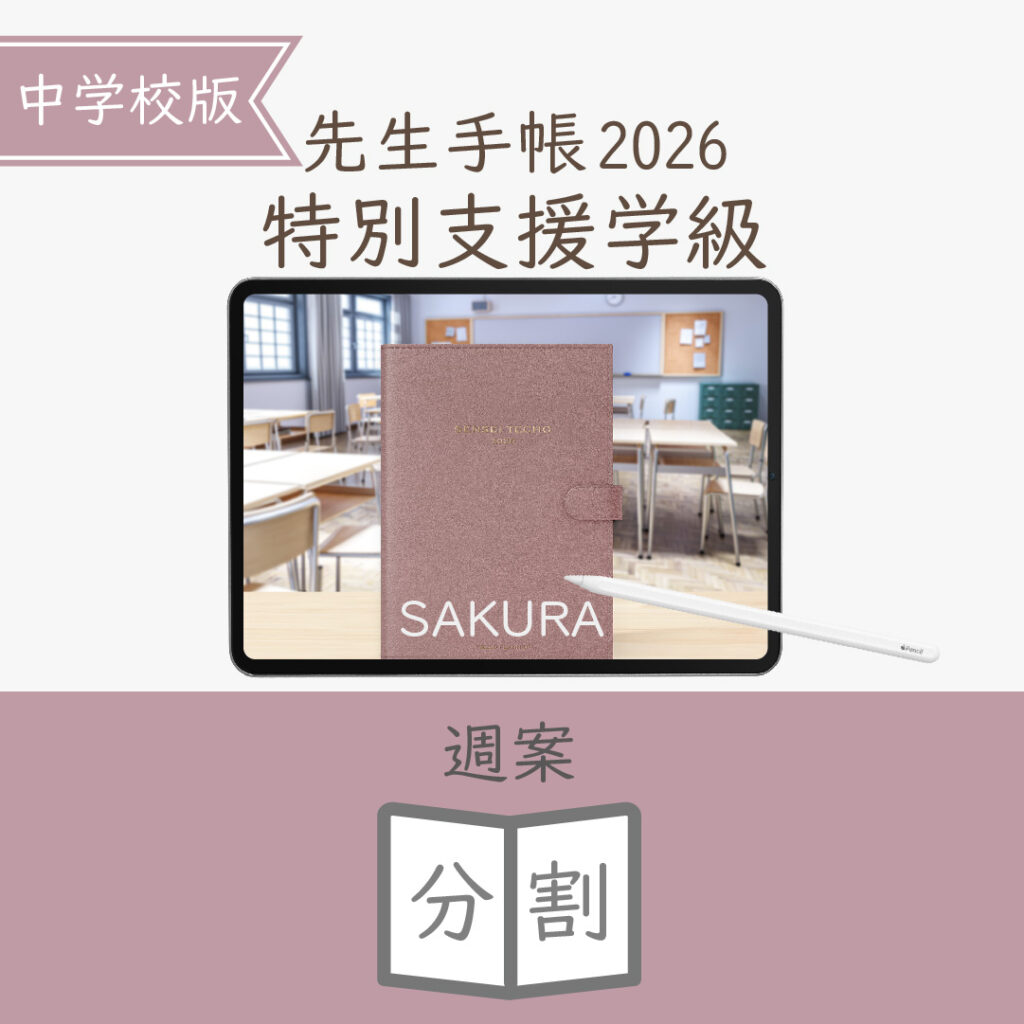 2026年度「先生手帳特別支援学級(中学校版)」【週案:分割型】【色:サクラ】