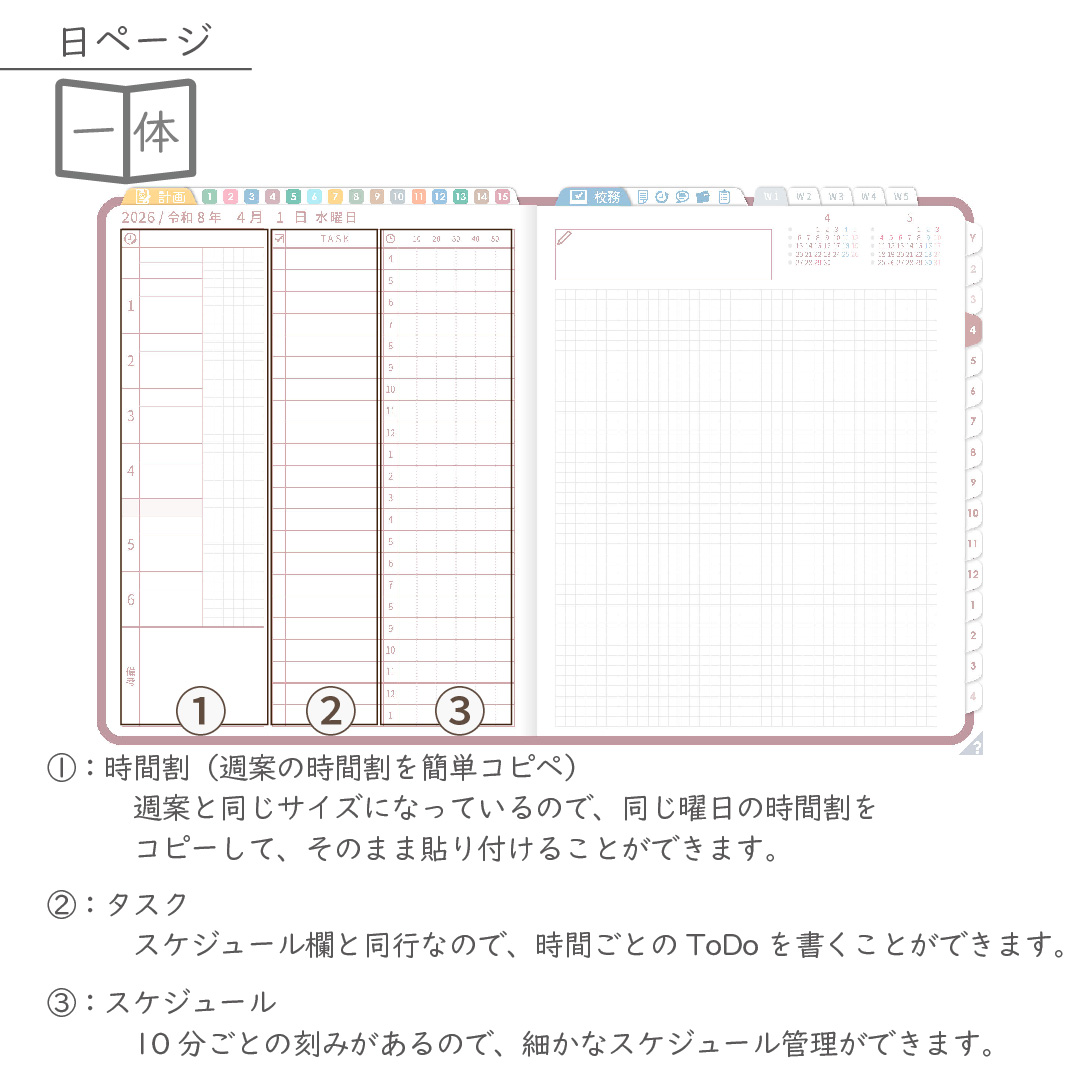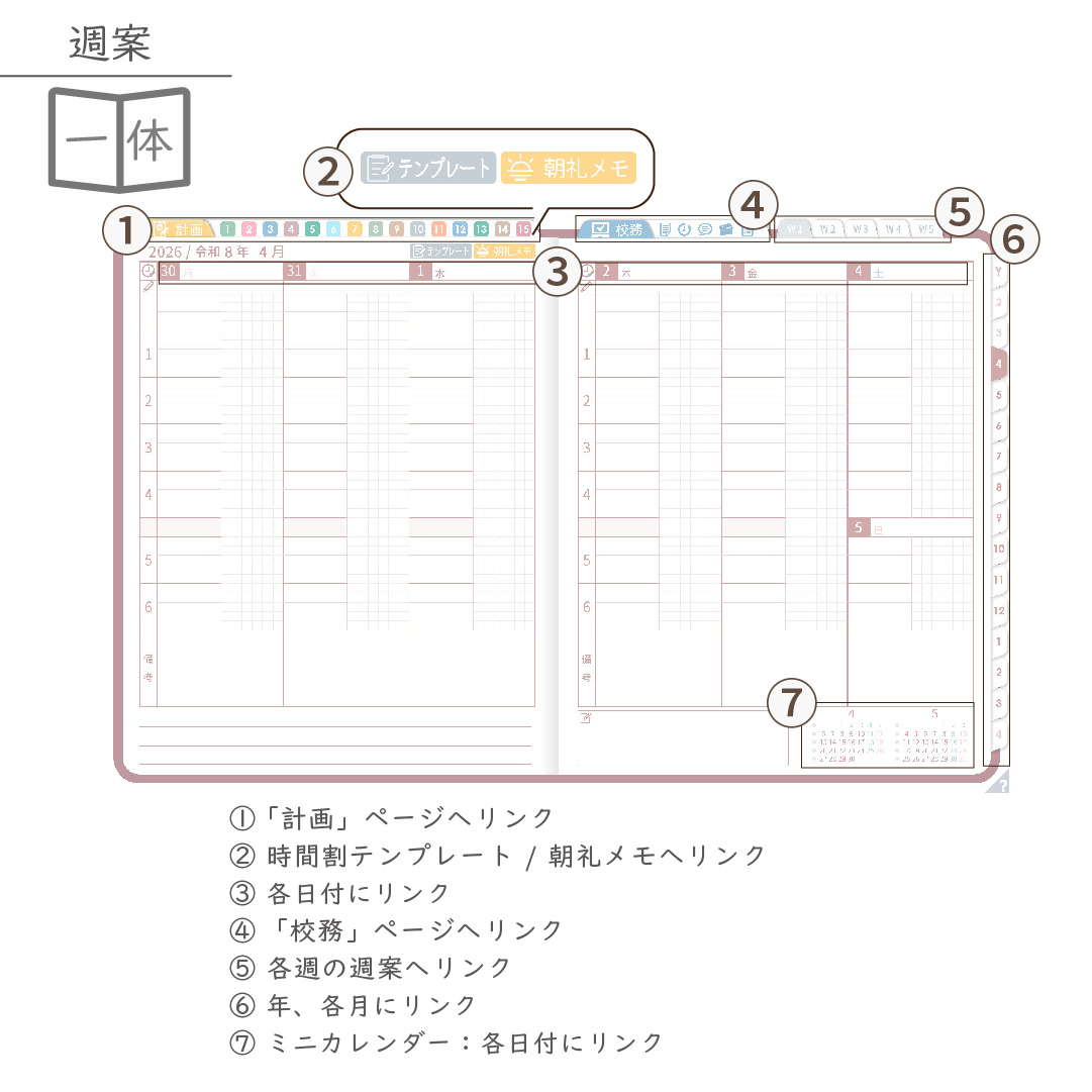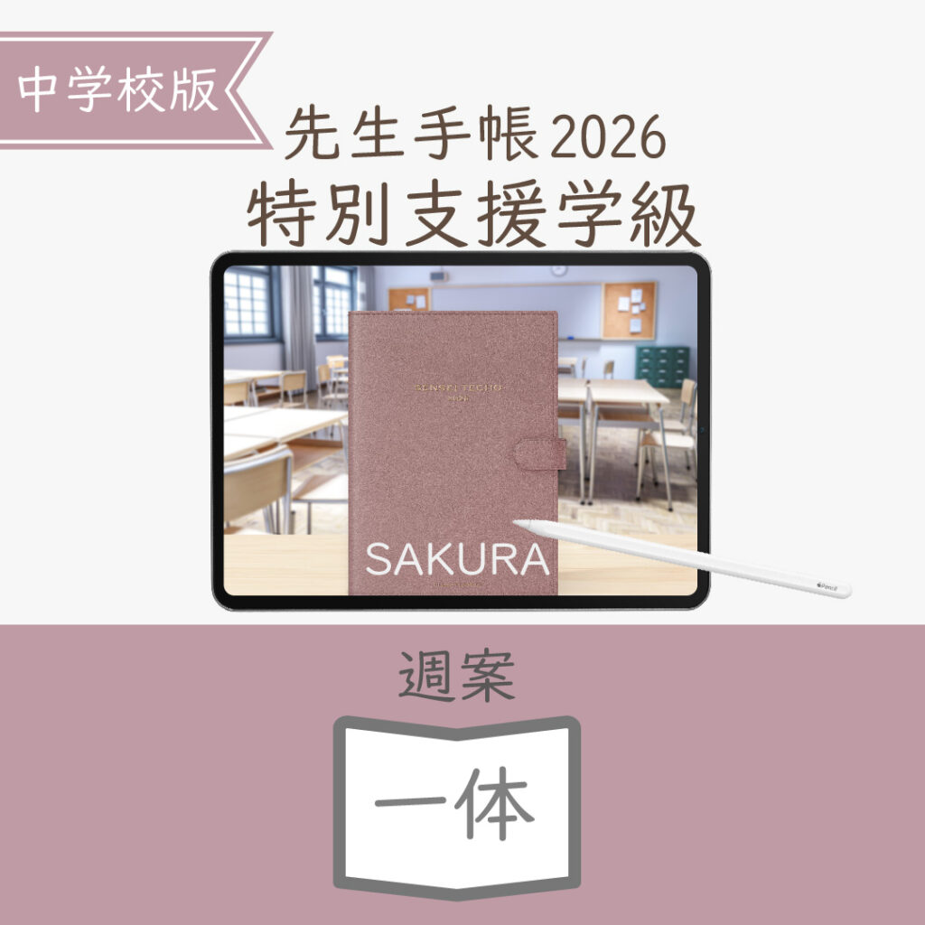 2026年度「先生手帳特別支援学級(中学校版)」【週案:一体型】【色:サクラ】
