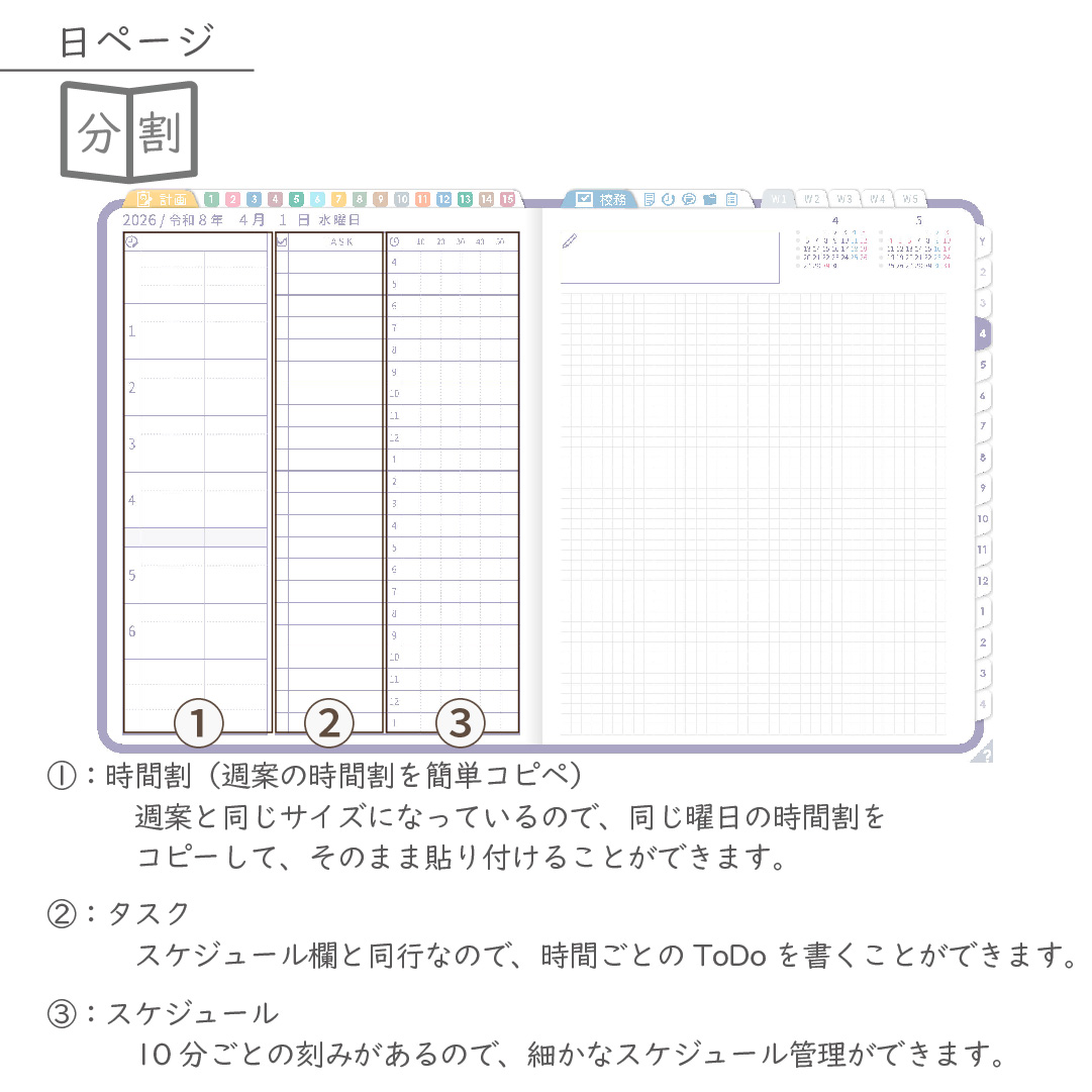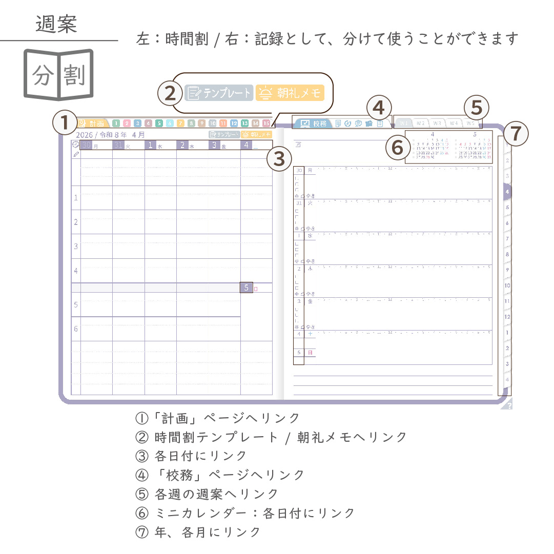 2026年度「先生手帳特別支援学級(中学校版)」【週案:分割型】【色:スミレ】