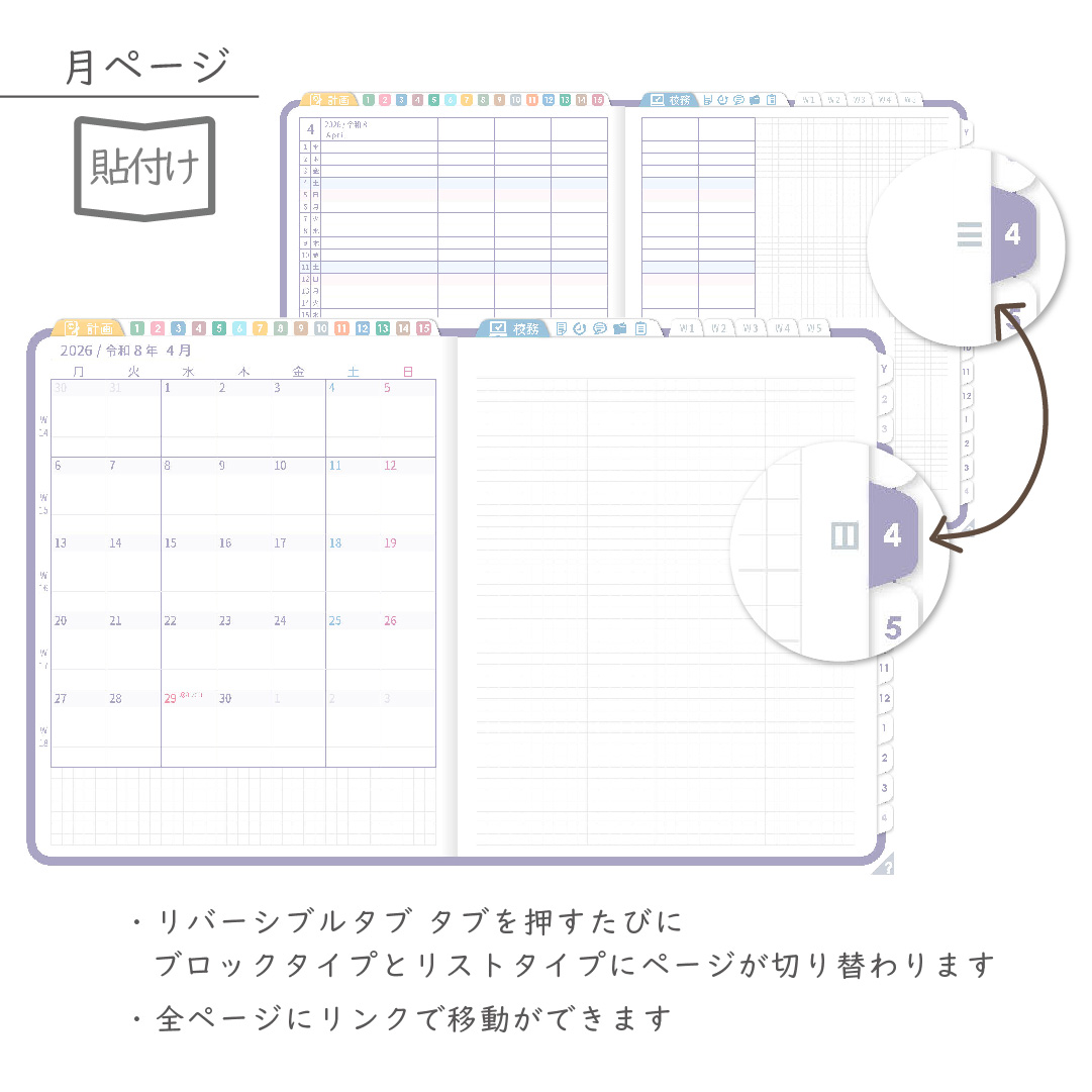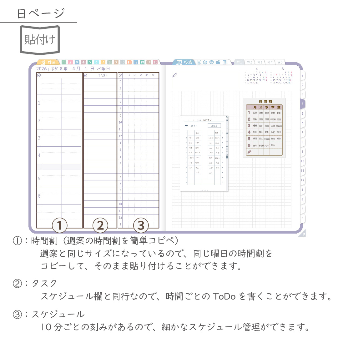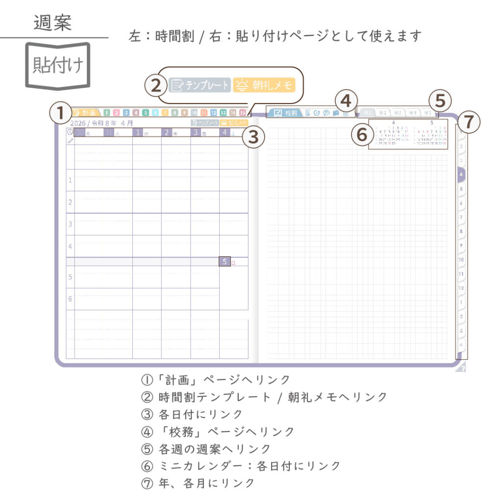 2026年度「先生手帳特別支援学級(中学校版)」【週案:貼付け型】【色:スミレ】