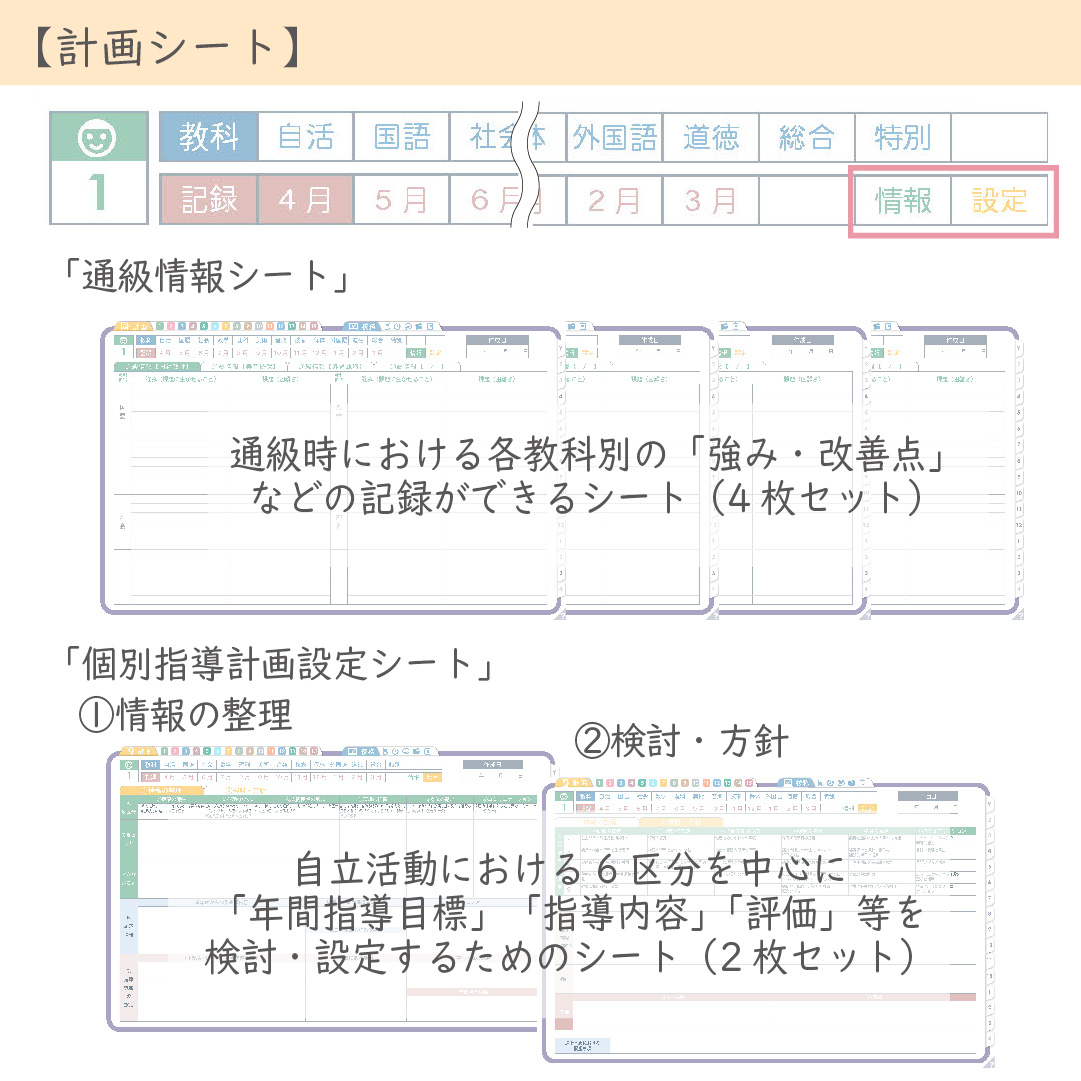 交流学級・通級授業時の様子を、月3枚(2週間ごと)記録可能