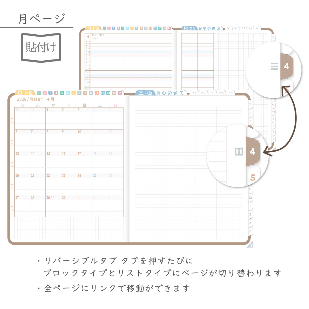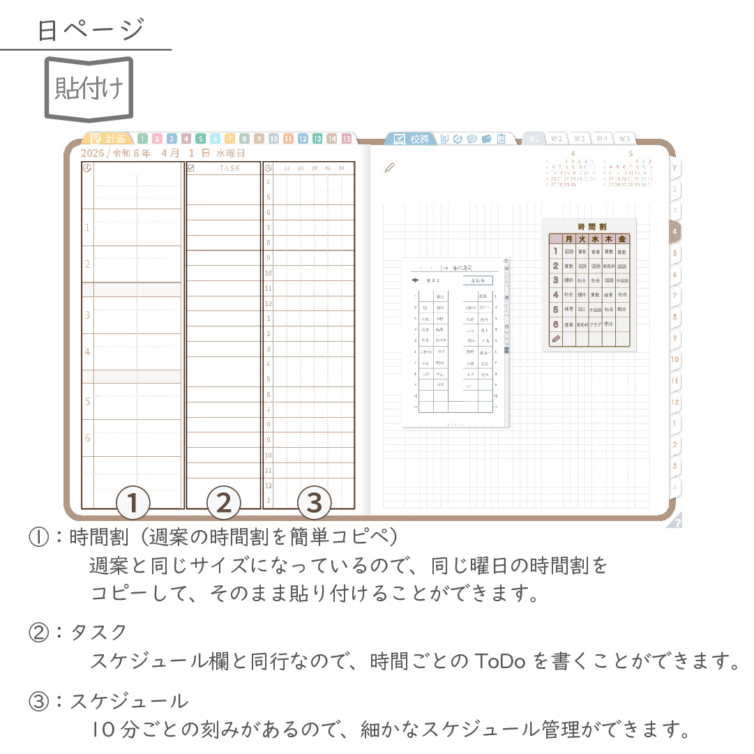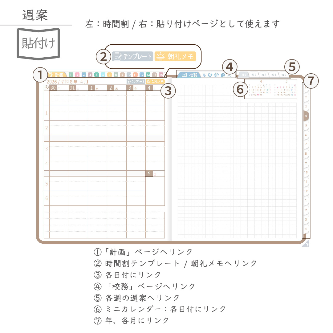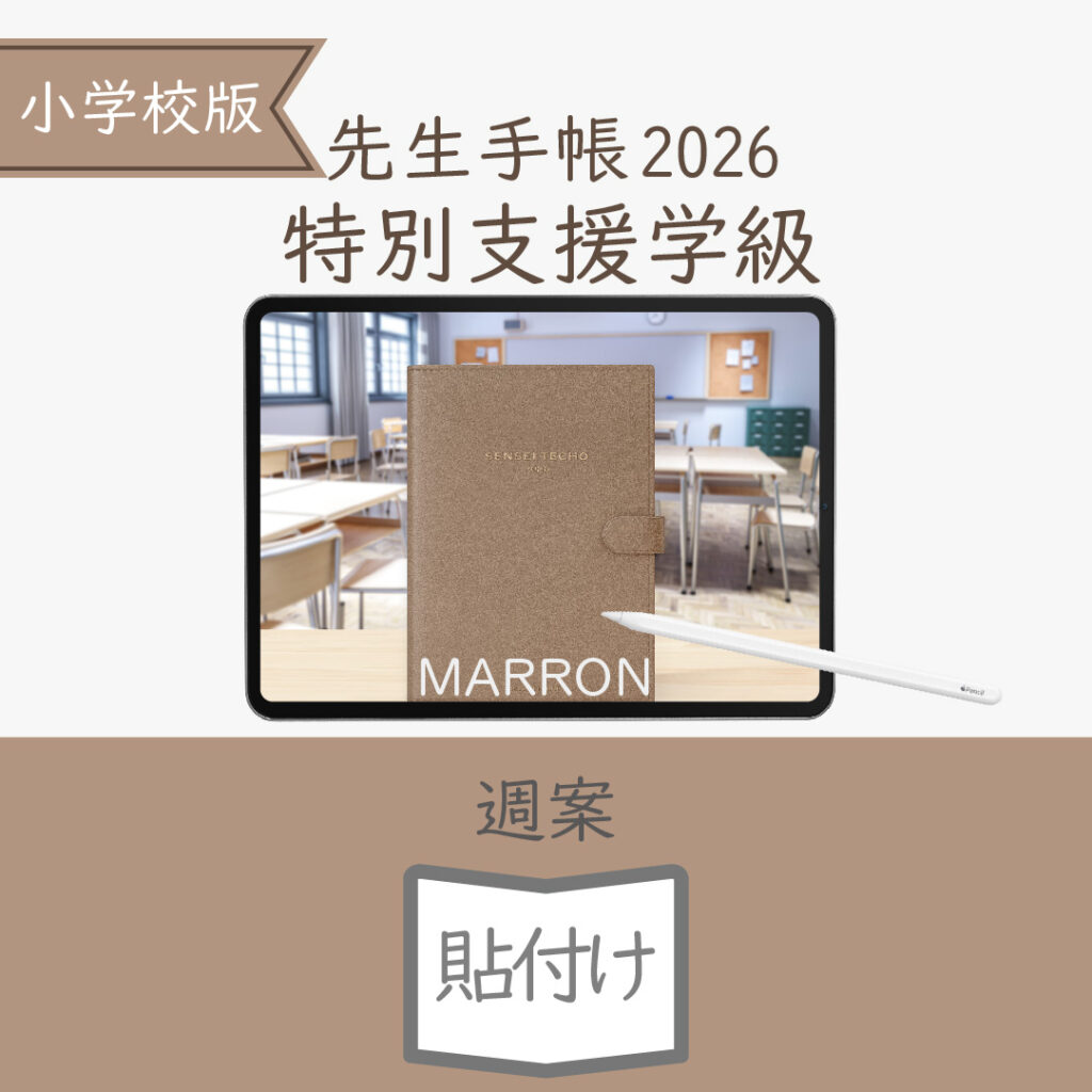 2026年度「先生手帳特別支援学級(小学校版)」【週案:貼付け型】【色:マロン】