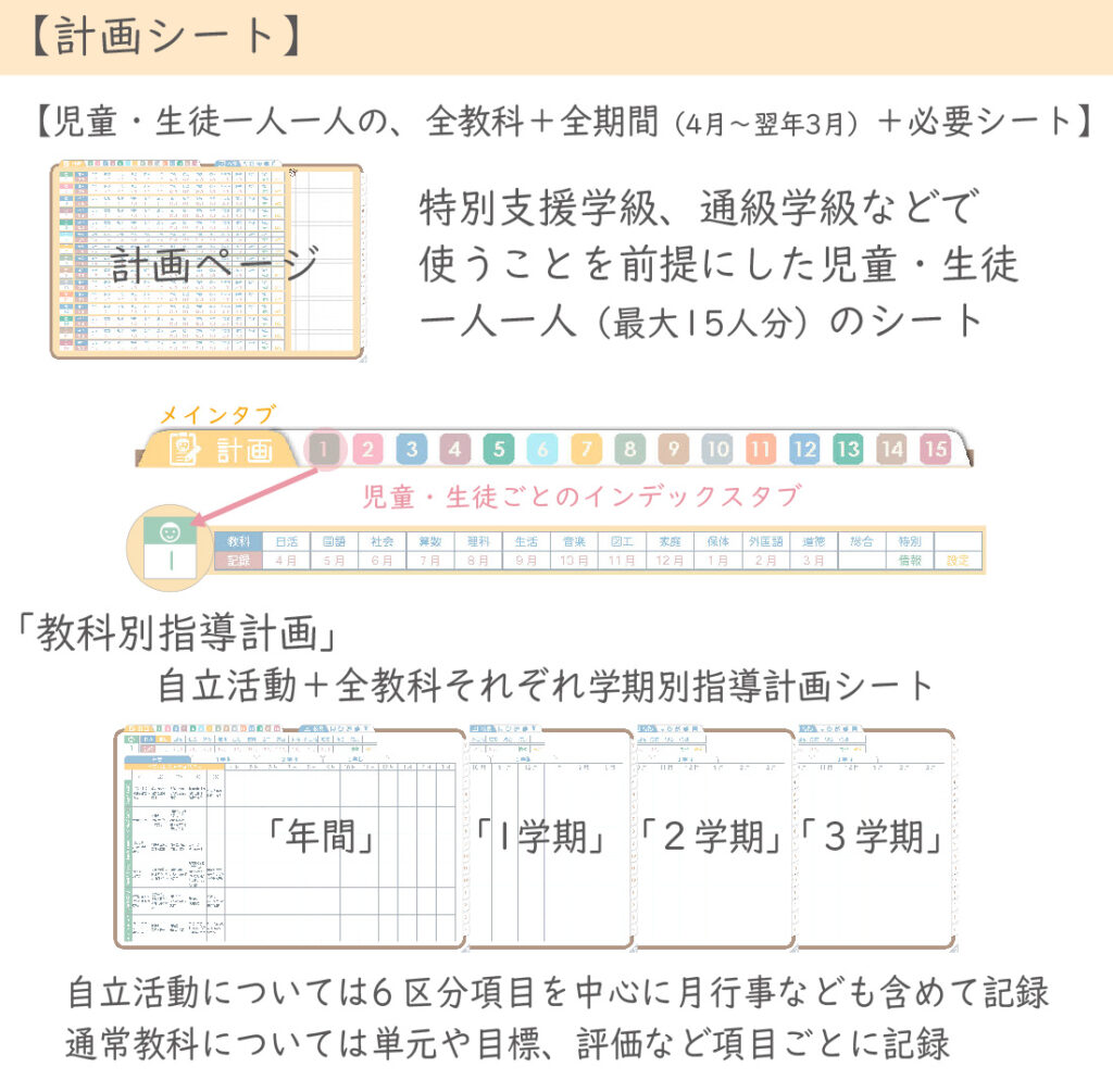 全15教科分の「年間+学期別」指導計画
