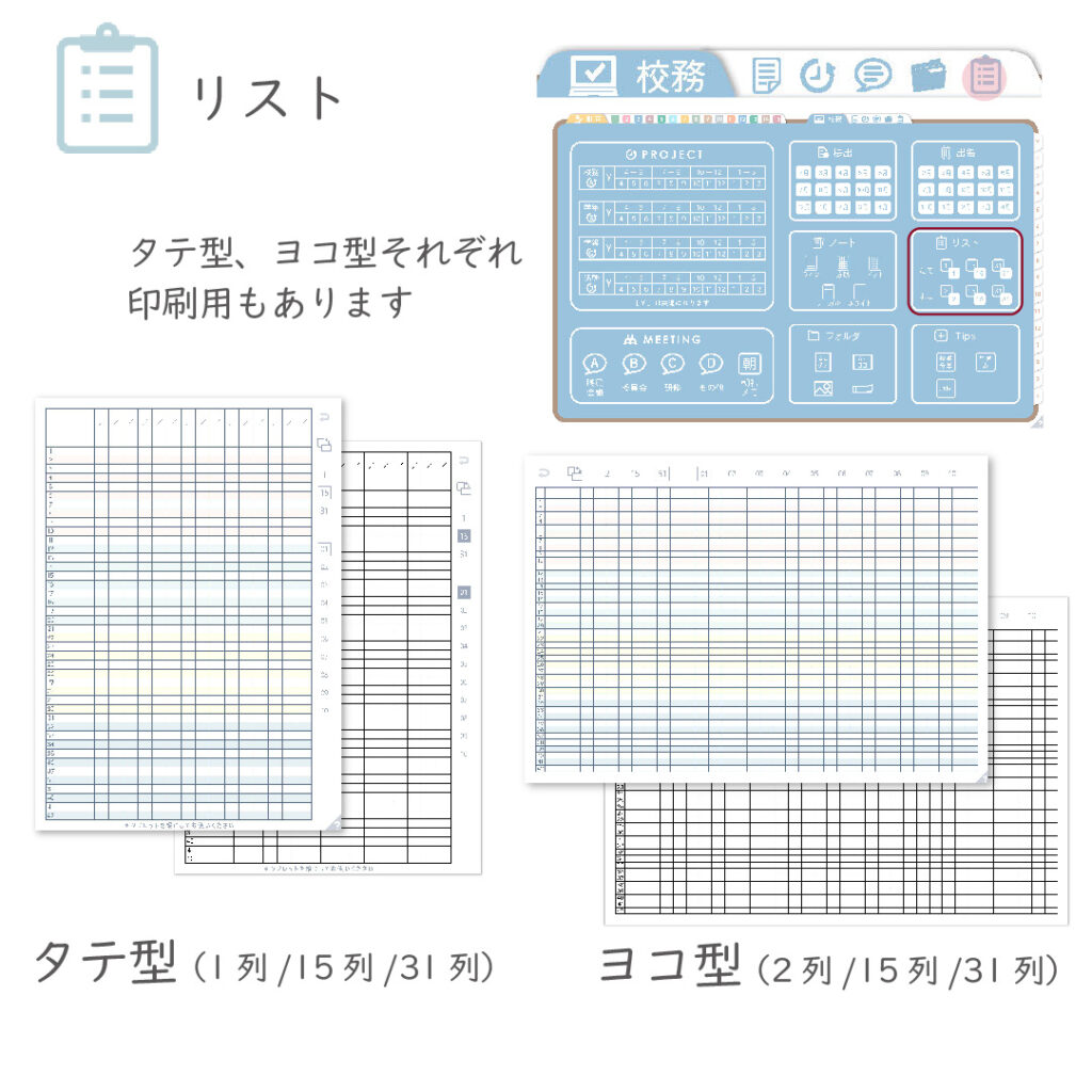 ・リストページ(縦型/横型/印刷用)を追加