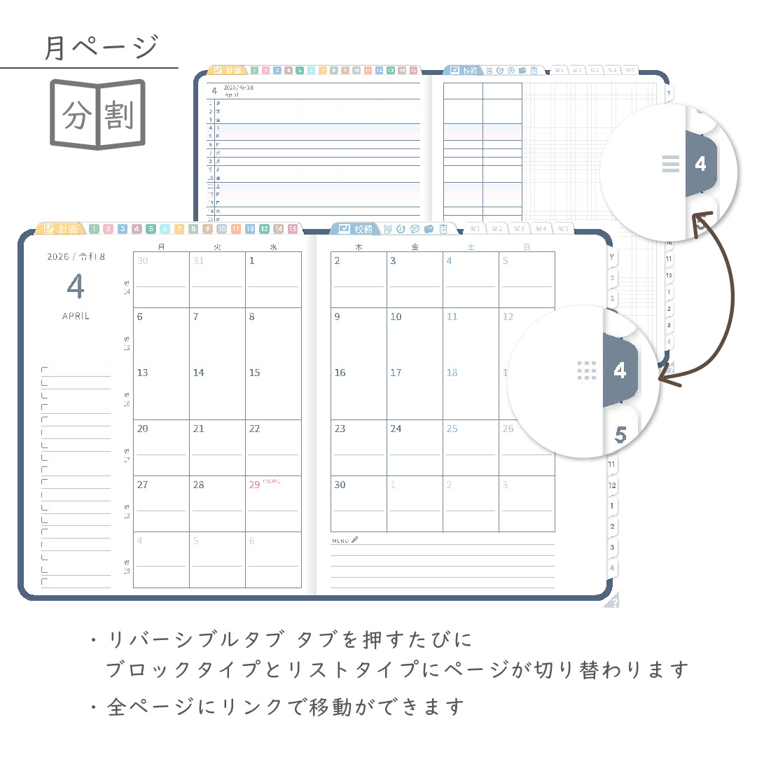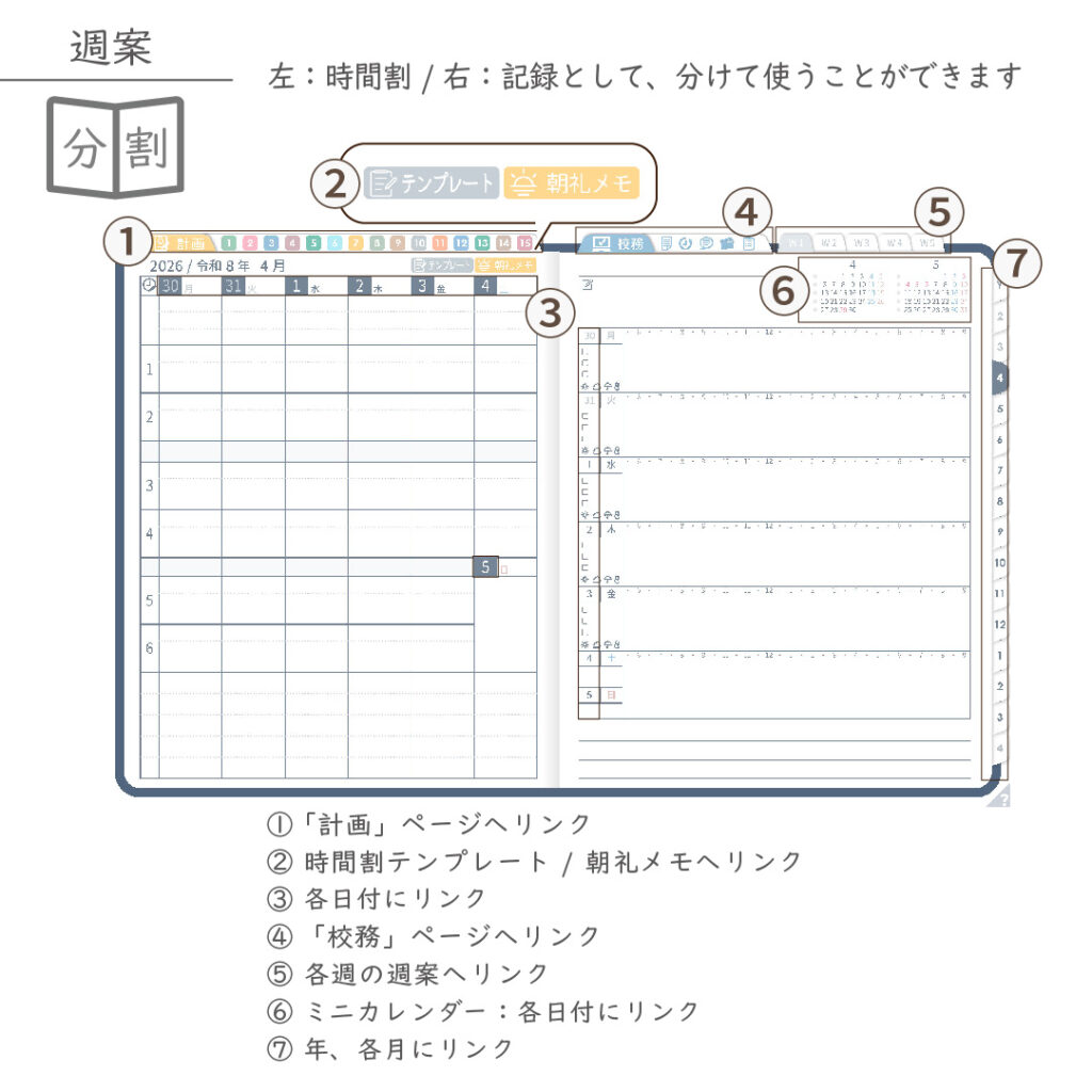 2026年度「先生手帳特別支援学級(小学校版)」【週案:分割型】【色:ネイビー】