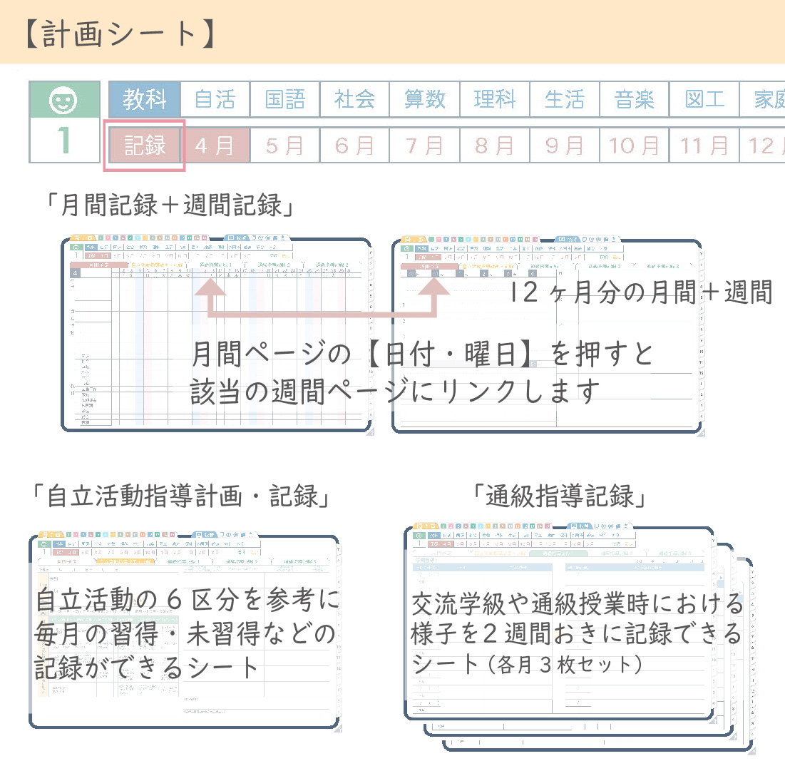 交流学級・通級授業時の様子を、月3枚(2週間ごと)記録可能