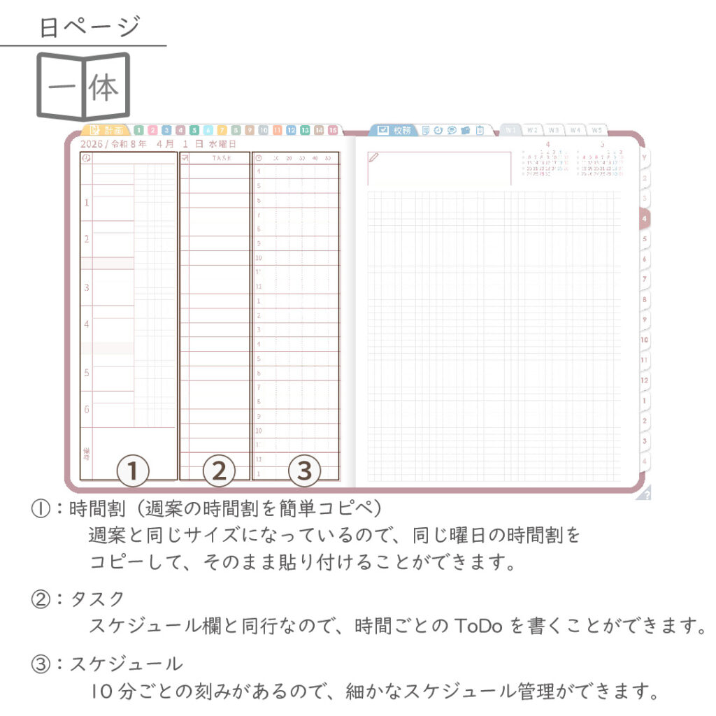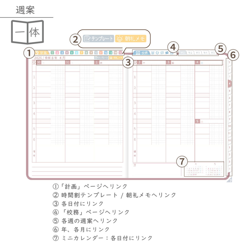 2026年度「先生手帳特別支援学級(小学校版)」【週案:一体型】【色:サクラ】