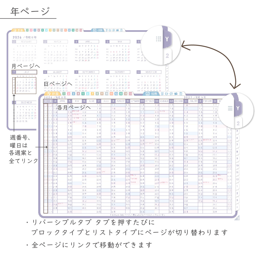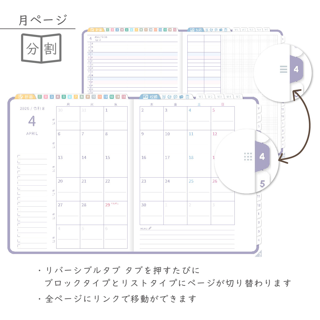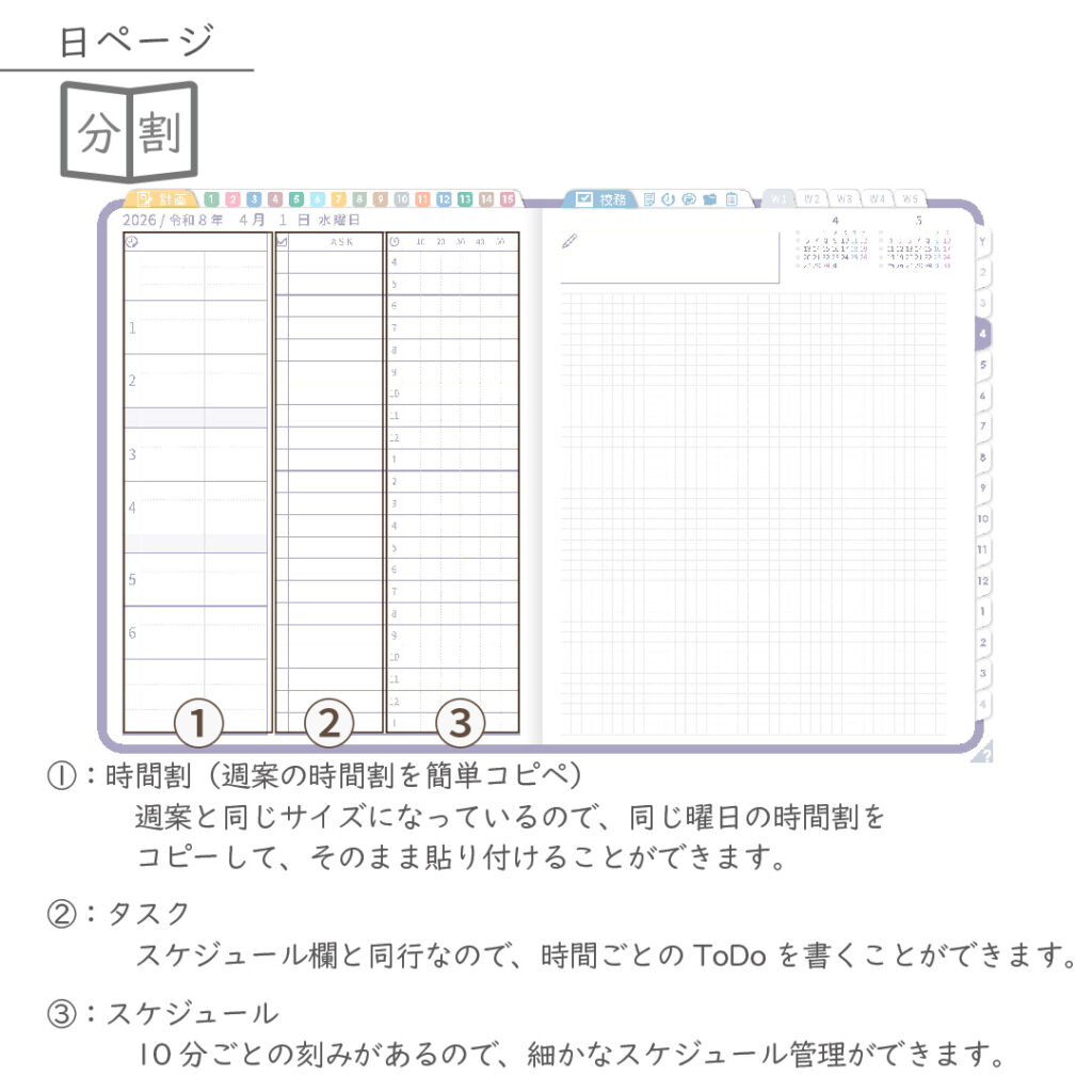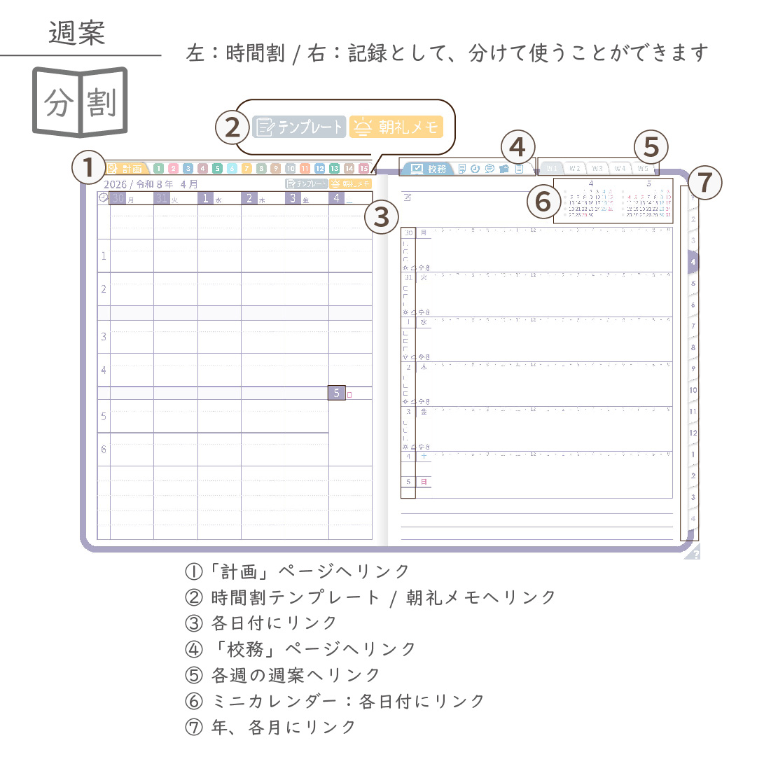 2026年度「先生手帳特別支援学級(小学校版)」【週案:分割型】【色:スミレ】
