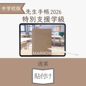 2026年度「先生手帳特別支援学級(中学校版)」【週案:貼付け型】【色:マロン】