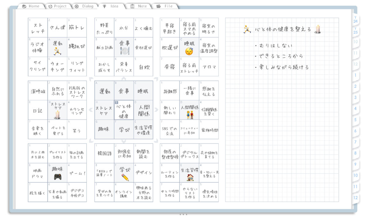 新しい発想や、問題の深掘りに役立つアイデアマップ (写真をクリックで拡大します)