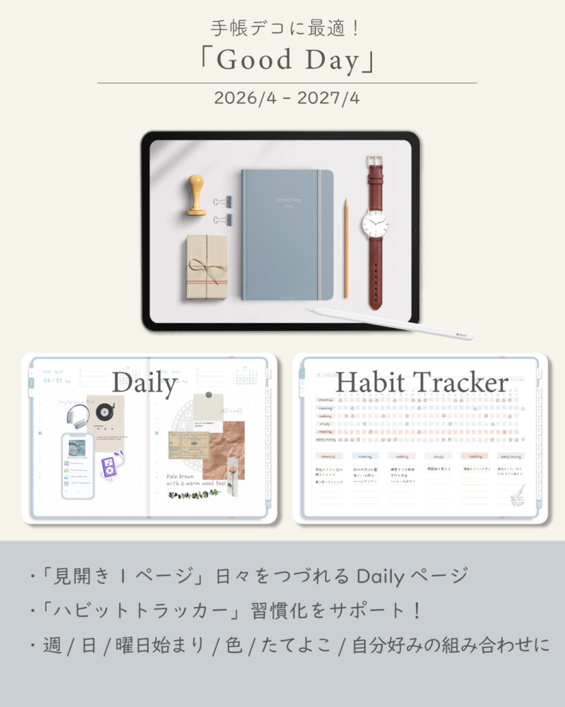 iPadのGoodnotesで使うデジタルプランナー2026年4月始まり版
