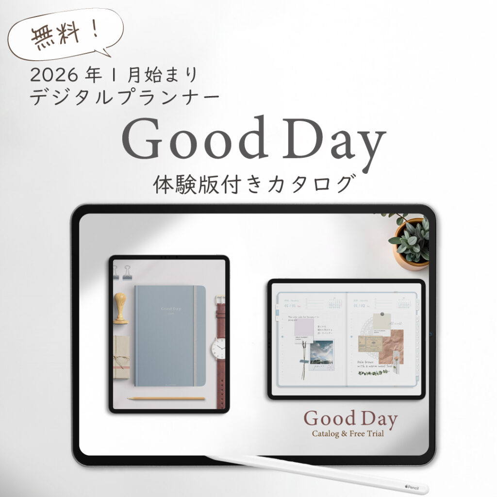 iPadのノートアプリで使うデジタルプランナーの体験版付きカタログや、デジタルステッカーなどが登録なしで"サクッ"と無料ダウンロードできます。