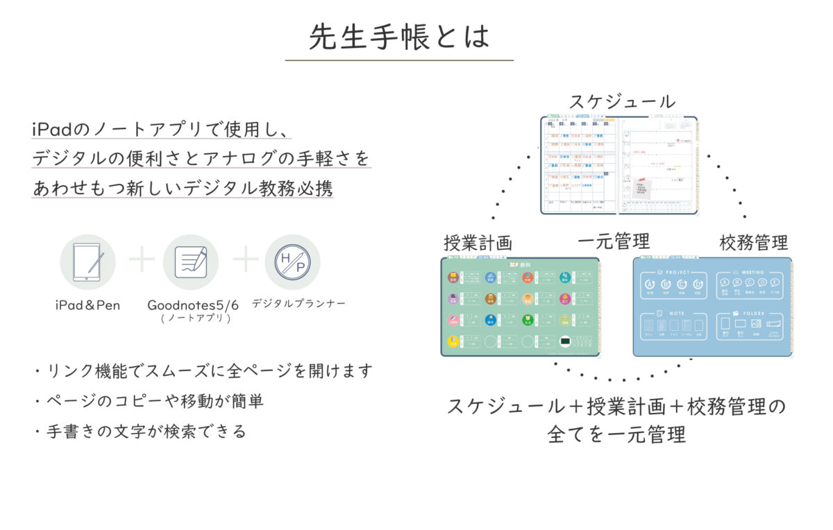 iPadのノートアプリGoodnotesで使用する、デジタル先生手帳。授業計画+校務管理+スケジュールを一元管理!