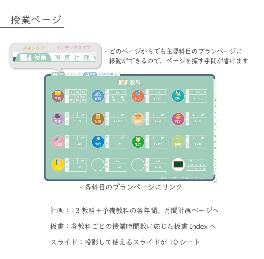 教科ごとの流れを、ひとつの場所で整理・管理できます。