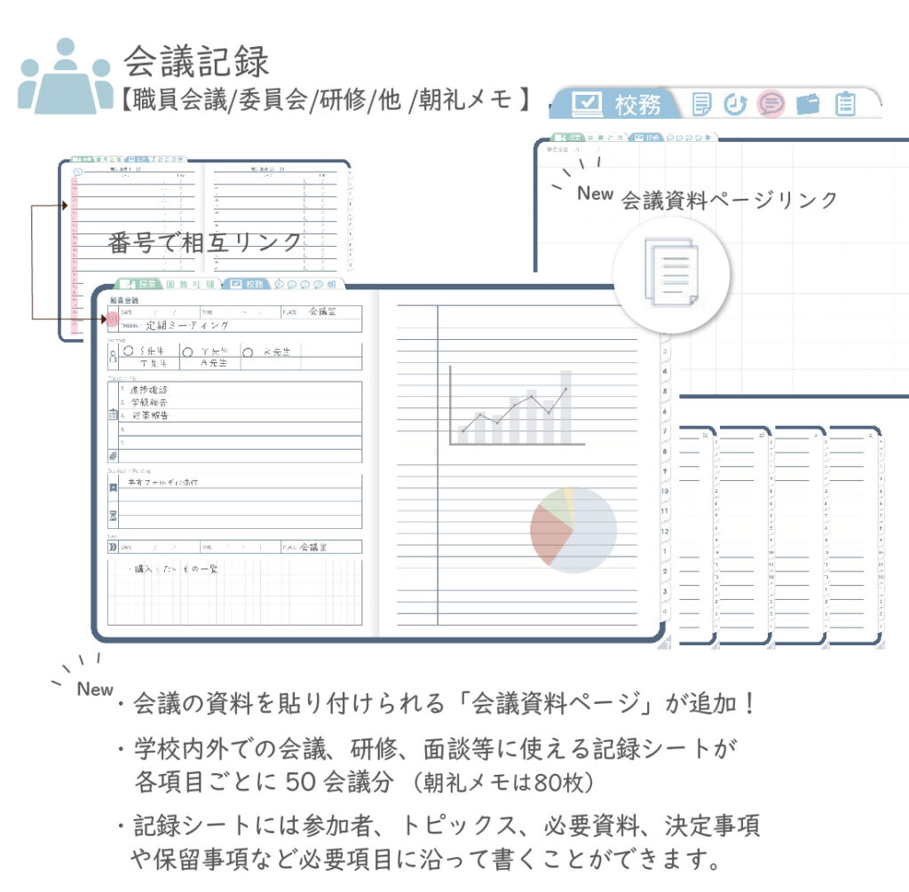 職員会議・委員会・研修・朝礼メモ・その他の会議ごとに、