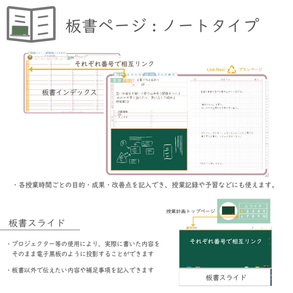 ※板書ページは「黒板タイプ/ノートタイプ」から選択可能。