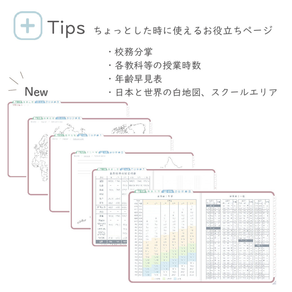 そのほか、年齢早見表、日本・世界の白地図など、